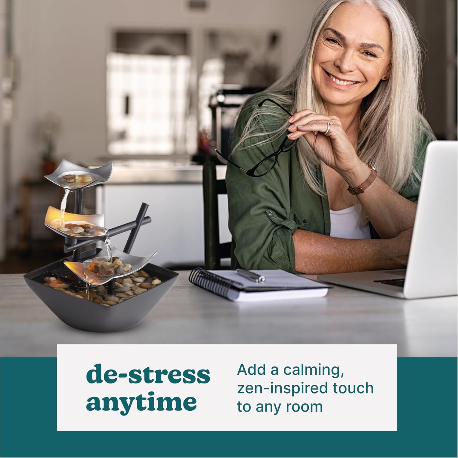 - Decorative Tabletop Fountain: Bring a calming, zen, and decorative feel to any room; 3 tiers create a gentle soothing flow of water replicating the sights and sounds of a tranquil spring