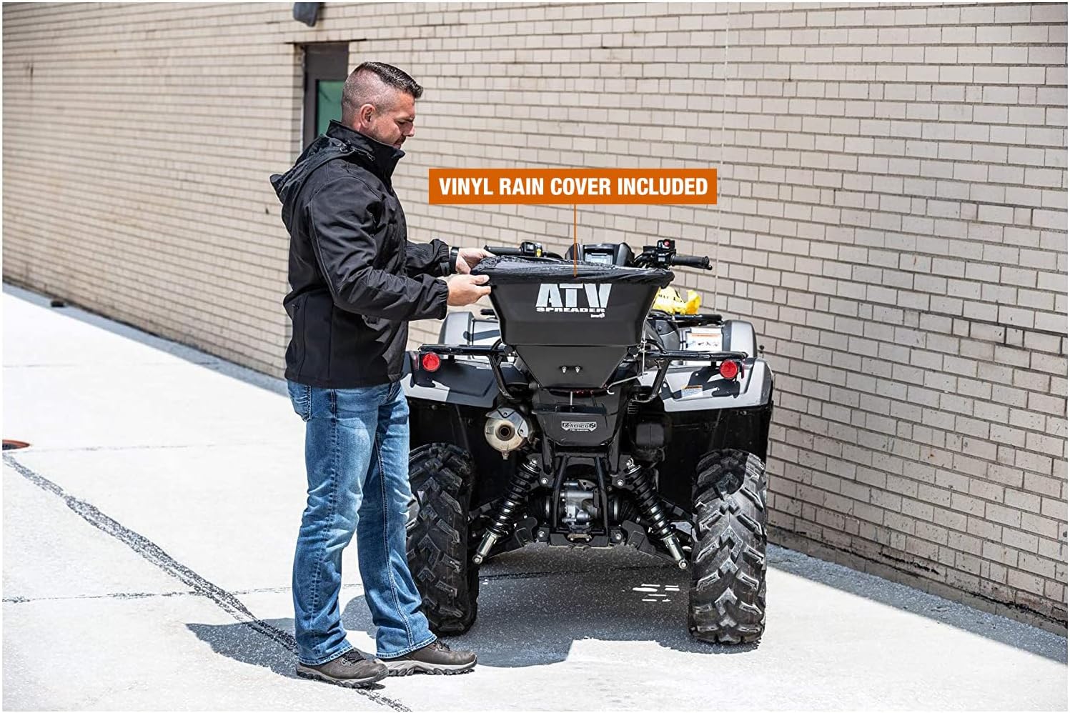 - Easy ATV Mounting: The spreader mounts directly to your ATV's existing rear utility rack, offering a secure attachment that enhances your landscaping, farming, and hunting efforts effortlessly