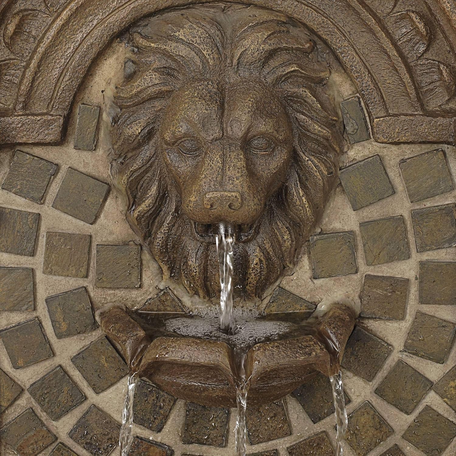 - 【Specifications】 51" high x 23 1/2" wide x 15 1/2" deep. Bottom of base is 16" wide x 13" deep. Weighs 48 lbs. Lions head garden fountain. Designed to be set against a house or garden wall. By the John Timberland brand.