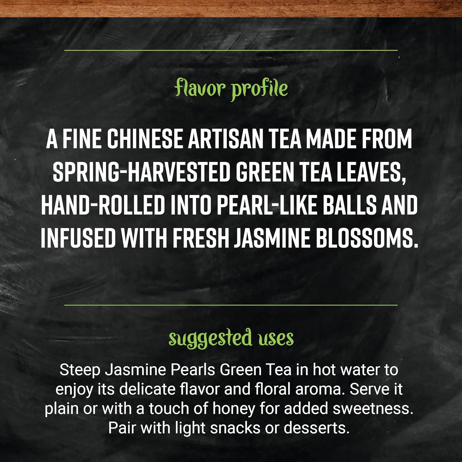 - BEST USES - Enjoy the exquisite experience of watching these jasmine-infused pearls unfurl as they steep. The tea boasts a heady fragrance and a distinctive flavor. Brew it to perfection and savor the floral notes, making it an ideal choice for a calming and aromatic cup of green tea.