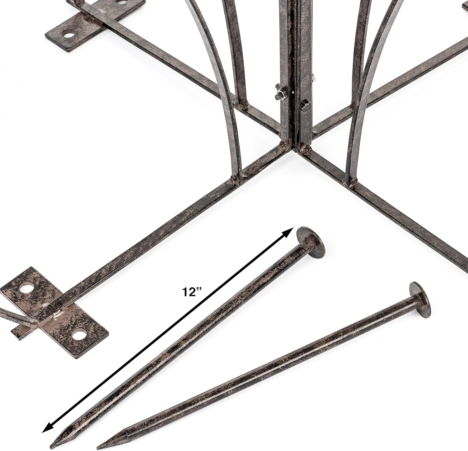 - Securely packaged and built to last β Professionally packaged, requiring assembly, the iron trellis is pleasing to the eye and perfect for growing vines. With dimensions of 36.5 inches wide by 69.25 inches high (plus 12 inch ground spikes) this heavy-duty large trellis offers a secure anchoring system that will happily support large plant material.