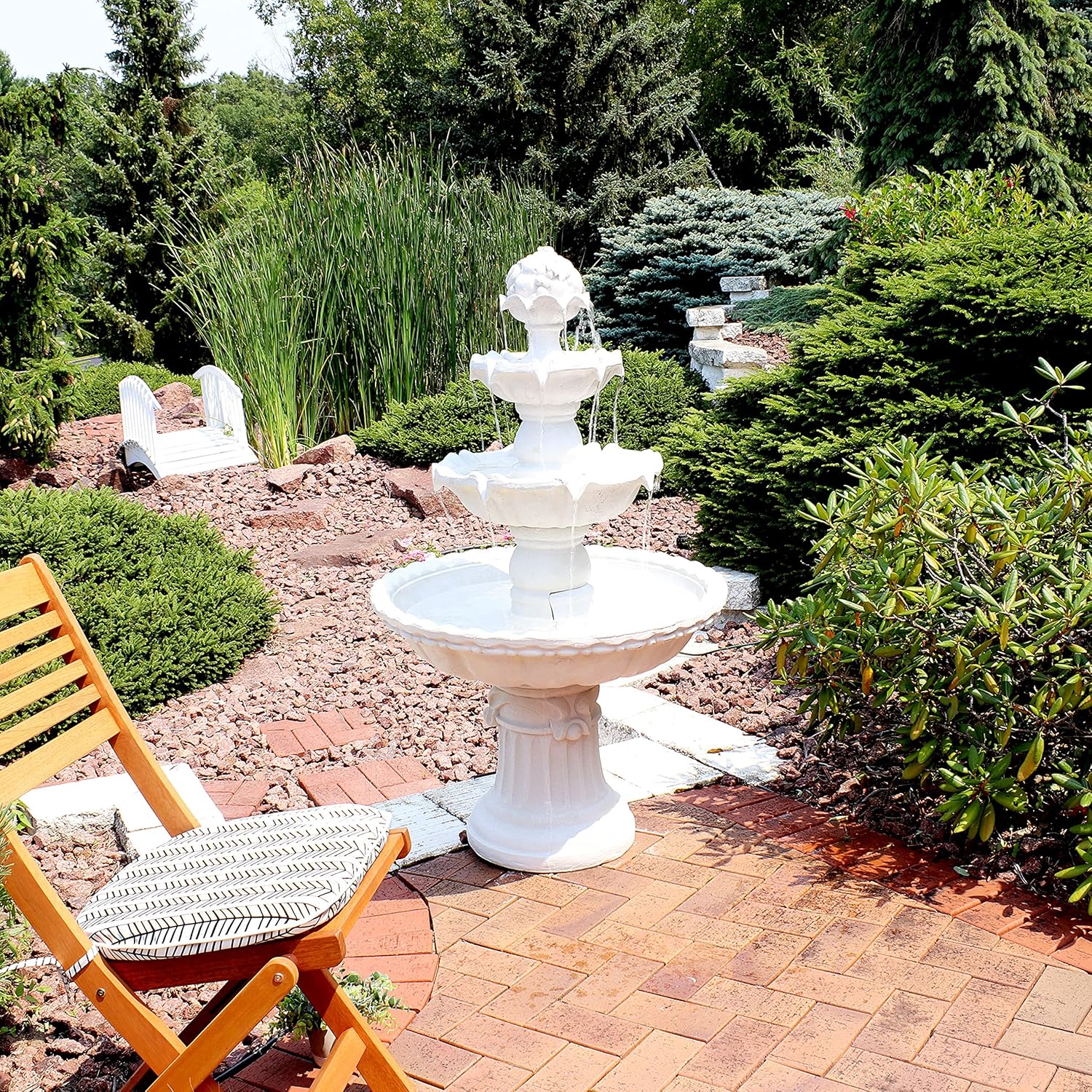 - SOOTHING SOUNDSCAPE: Cascading water creates calming background noise, turning any outdoor space into a peaceful retreat. The water flows from the top of the outdoor waterfall fountain and falls down each tier.