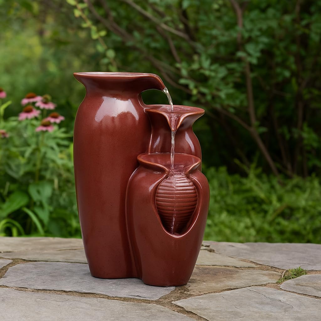 - OUTDOOR DΓCOR: Features a 3-tiered design with ceramic-look jars for a stylish and soothing addition to your porch, backyard, or lawn