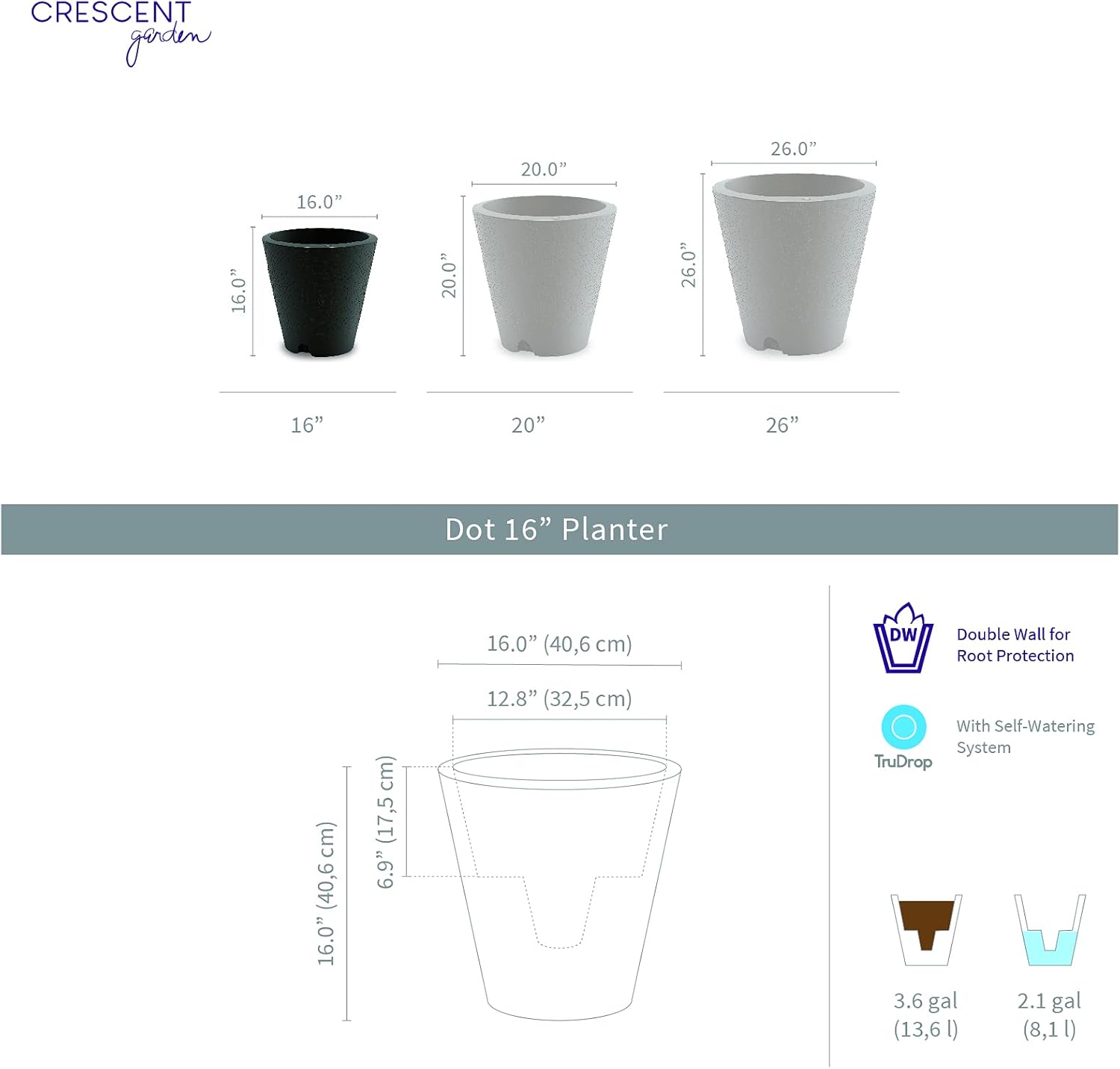 - RECYCLABLE: Like all Crescent Garden planters, the Dot is food-safe and made from 100% recyclable high-grade polyethylene. Grow your favorite plants with confidence with this innovative plant pot.