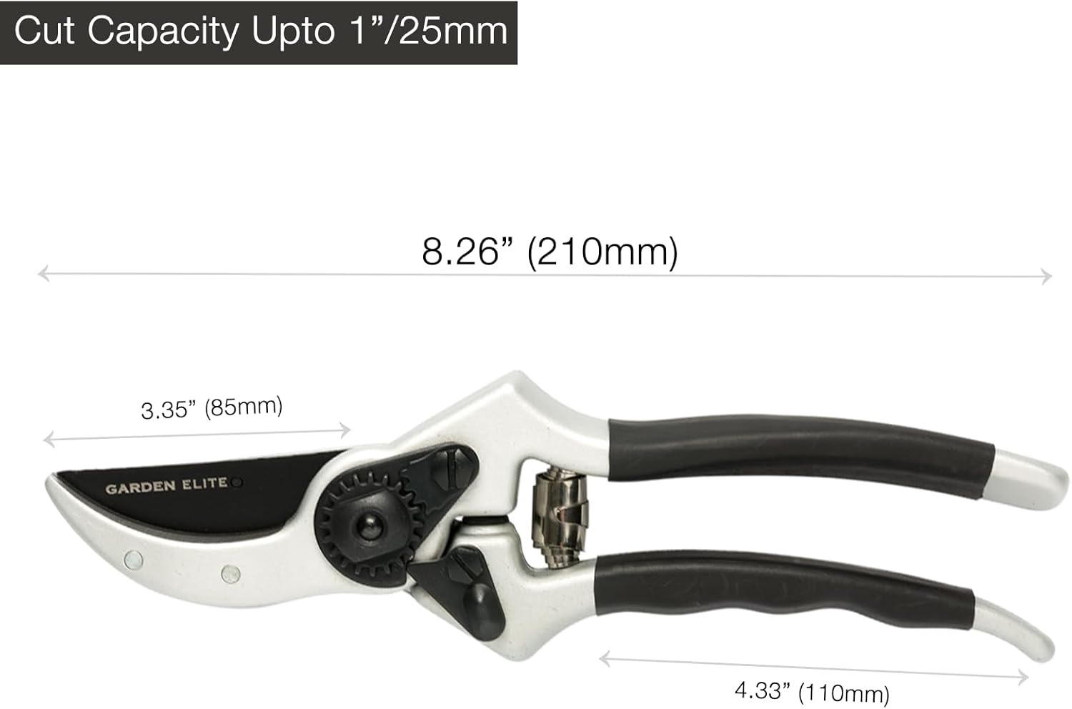 - Ergonomic Rubber Grip - This pair of premium garden cutting shears feature a forged aluminum handle that has been ergonomically designed to fit comfortably in your hand. The handle is coated with non-slip rubber grips for added comfort and an easy-to-operate thumb lock.