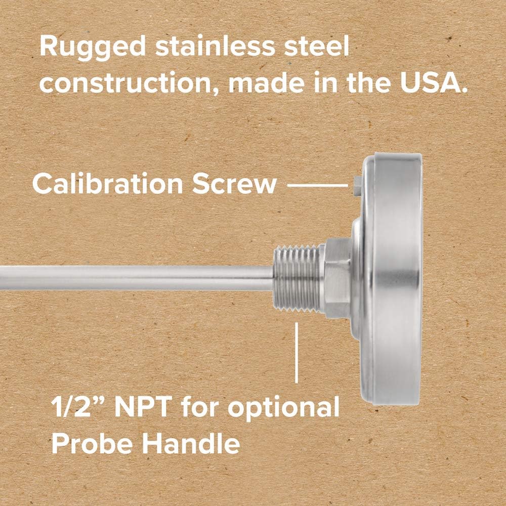 - Large 3" Hermetically Sealed Dual Scale Dial: 0 to 200°F & -10 to 90°C