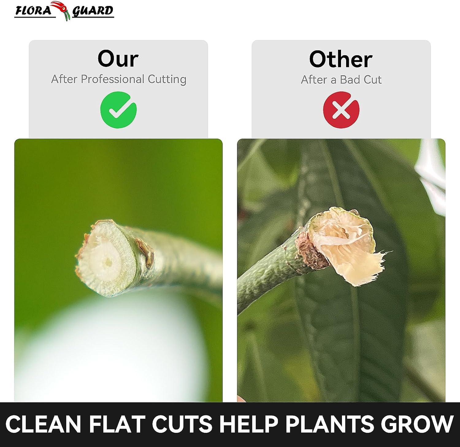 - 【STAINLESS STEEL BLADES】Crafted from high carbon stainless steel, the blades are engineered for exceptional cutting performance and long-lasting durability. The ultra-sharp edge ensures clean, precise cuts with minimal effort—perfect for both professional landscapers and home gardening enthusiasts. Whether trimming thick branches or shaping delicate plants, these premium blades deliver reliable, professional-grade results every time.