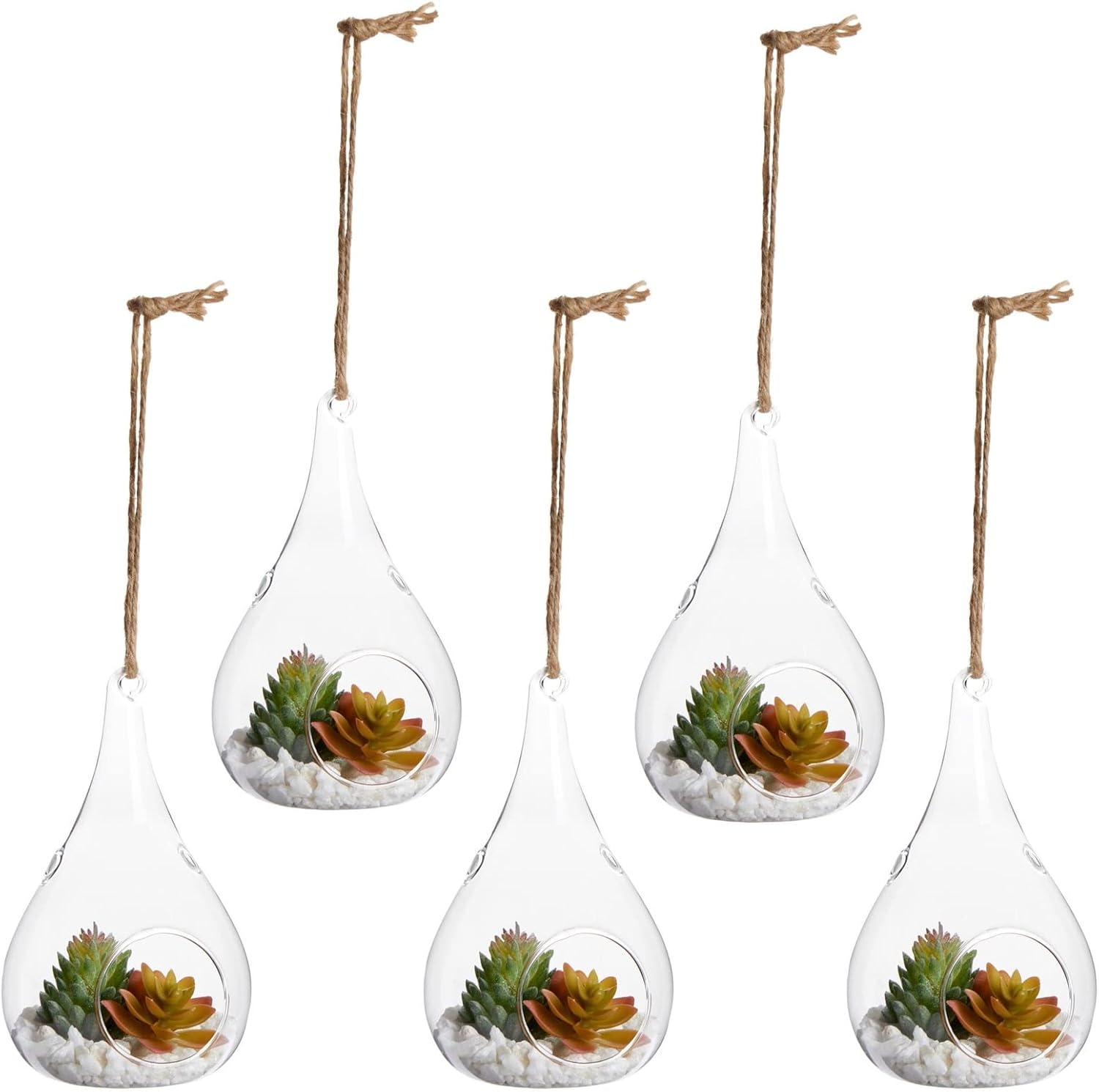 - Elegant Glass Terrarium: The Juvale 5-Pack Hanging Glass Terrarium Containers offer a sophisticated solution for displaying air plants or succulents. These teardrop-shaped glass terrariums enhance any space with their Art Deco elegance and style