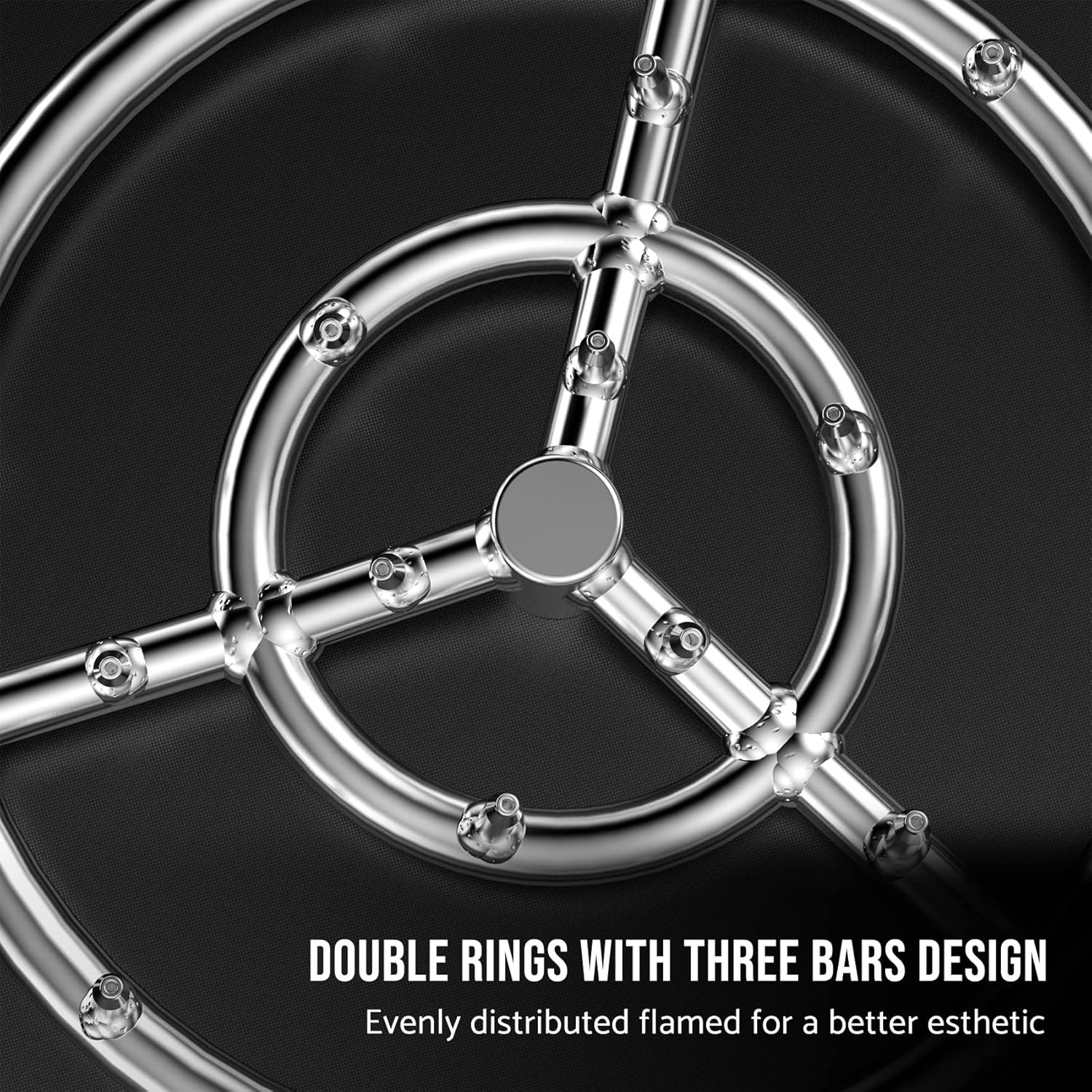 - Double round ring burner with a 1/2" NPT high-capacity inlet in the middle, Max BTU’s rated up to 90,000
