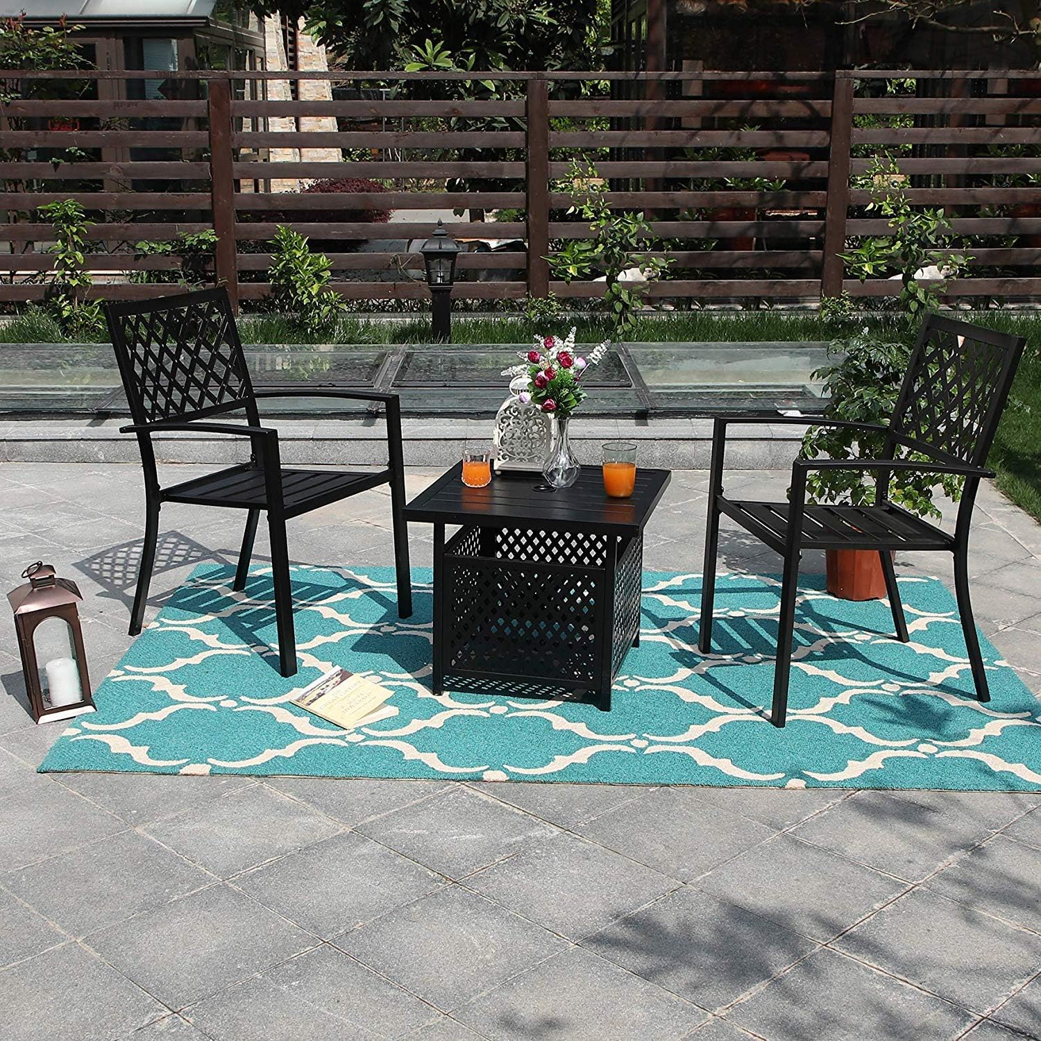 - This black table designed with reinforced integral steel construction, makes this patio table durable and sturdy enough for outdoor and indoor use. With a modern, it provides comfortable dining and chatting environment