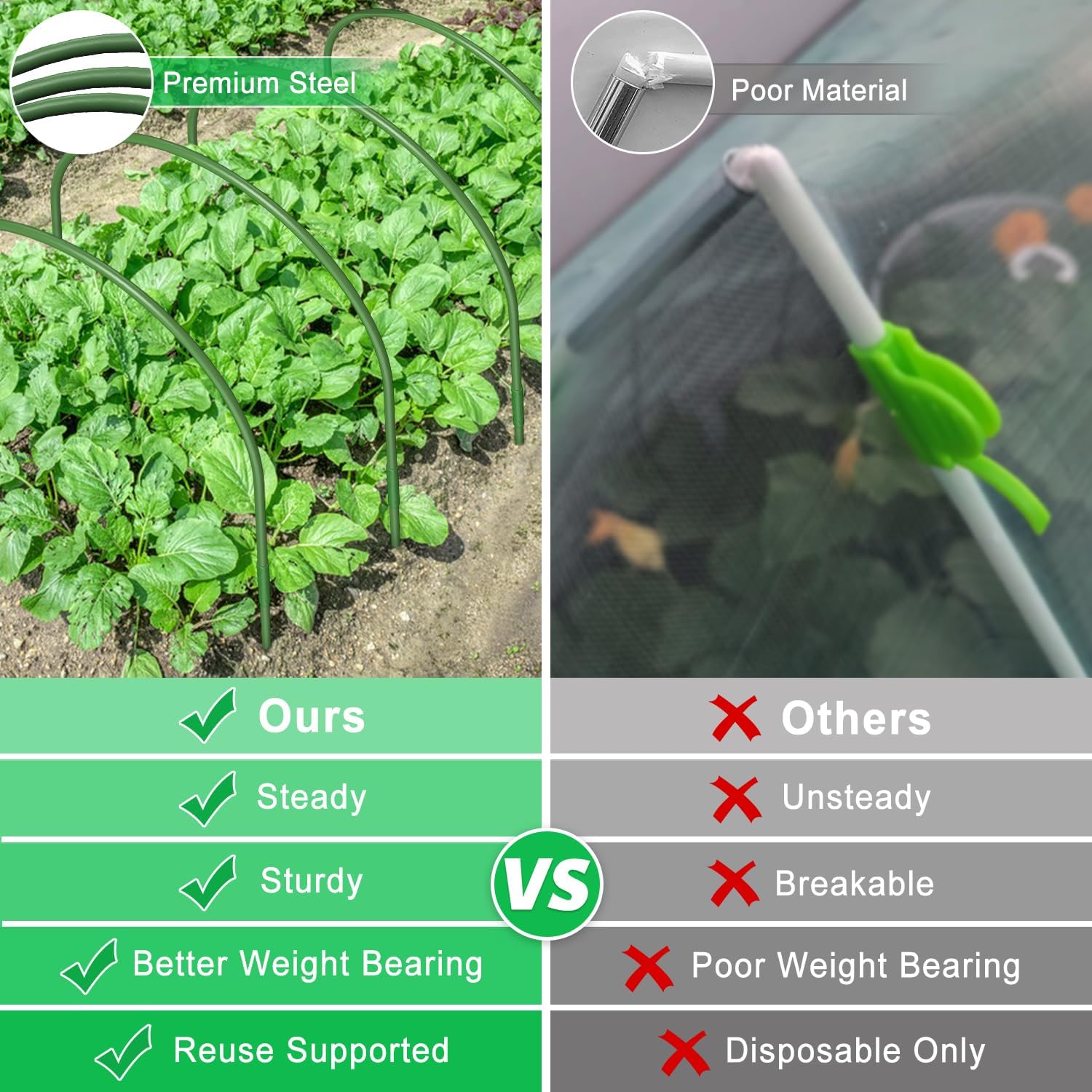 - Sturdy Design- Made with high-quality materials and 11mm/0.43in thick of each stake, to withstand high impact and pressure without bending or breaking, provides great stability and ideal environment for rapid germination and growth of young plants even in bad weathy, perfect for indoor and outdoor greenhouse plants use.