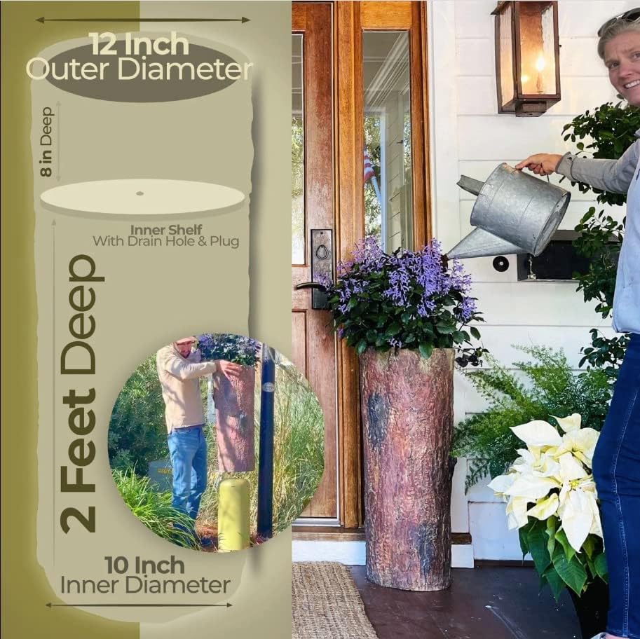 - šæ Tall 32in realistic hollow log pot for your outdoor doorway, porch or patio space.