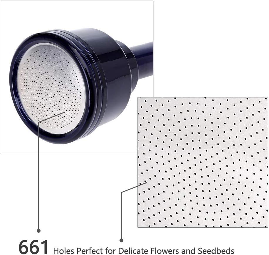 - NEW DESIGNED SHOWER HEAD. Especially 661 holes are perfect for delicate flowerbeds and seedbeds. The head is fully removable which allows to break down to pieces then clean the clogged parts