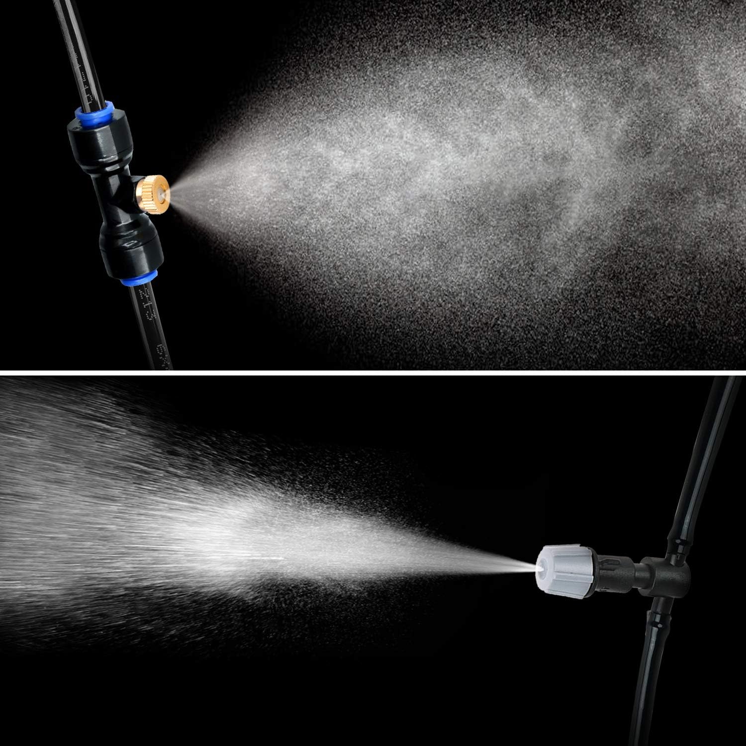 - Easy to Install: Instruction is included. Just need 2 steps in 3 seconds to set up the mister nozzles. NOTE: Recommended to fully and firmly insert the tubing into the tee connector to prevent leaking