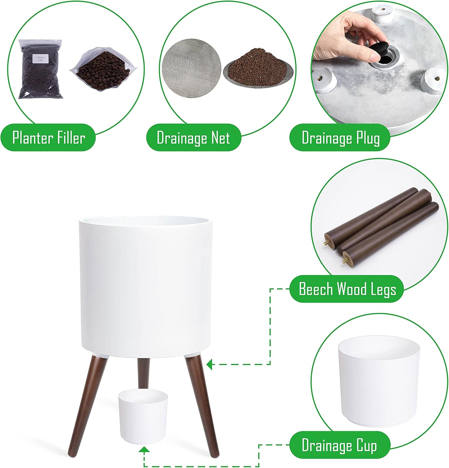 - Whatβs included: planter pot with drainage hole, set of stand β 3 solid wooden legs.