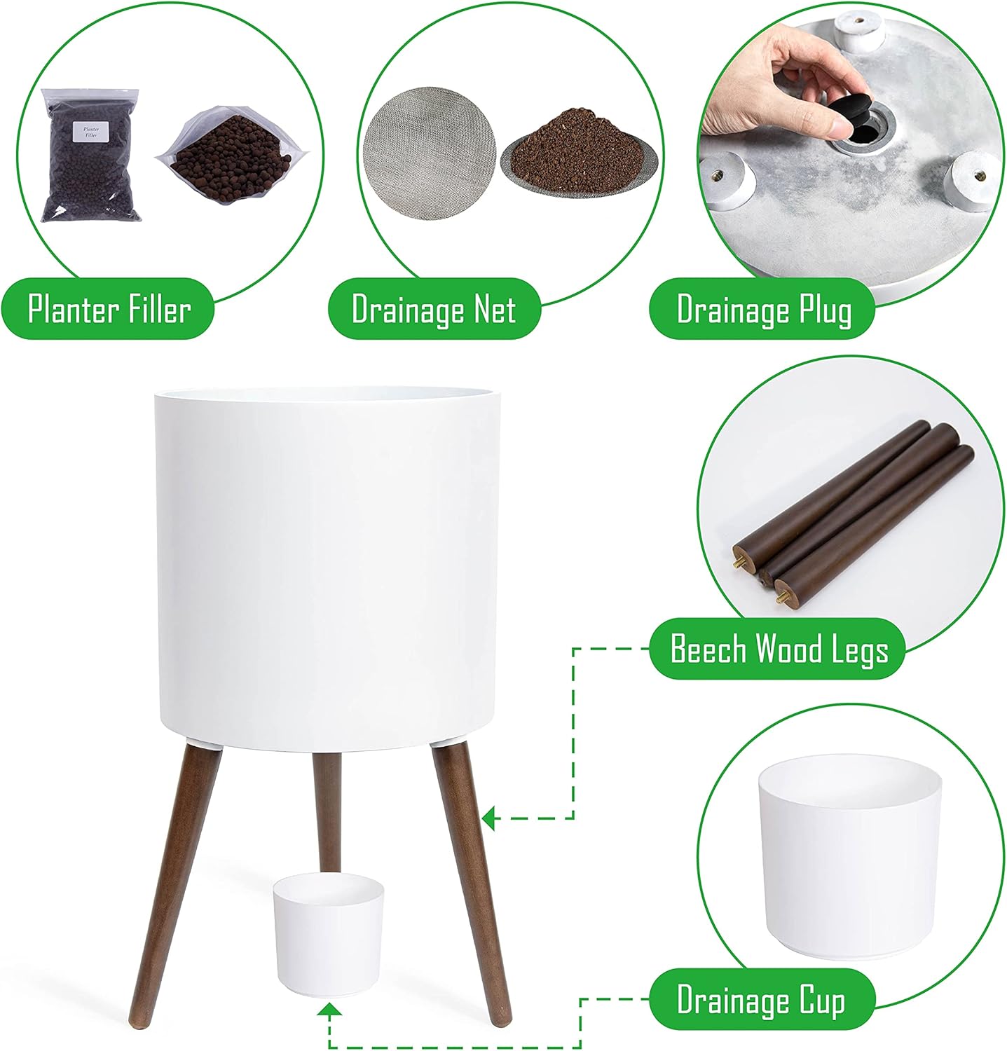 - Whatβs included: planter pot with drainage hole, set of stand β 3 solid wooden legs.