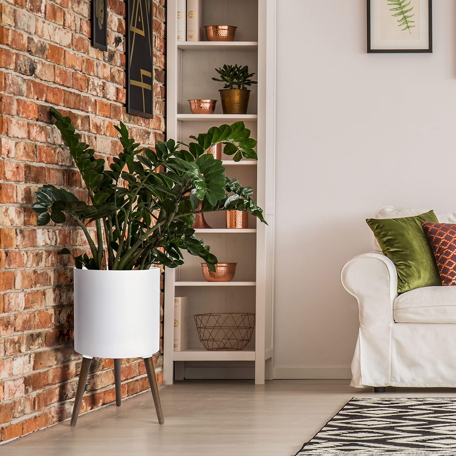 D'vine Dev 14 Inch Planter Pot with Stand, Mid-Century Tall Plant Pot with Legs for Indoor Plants, X-Large, White, 88-O-D-1