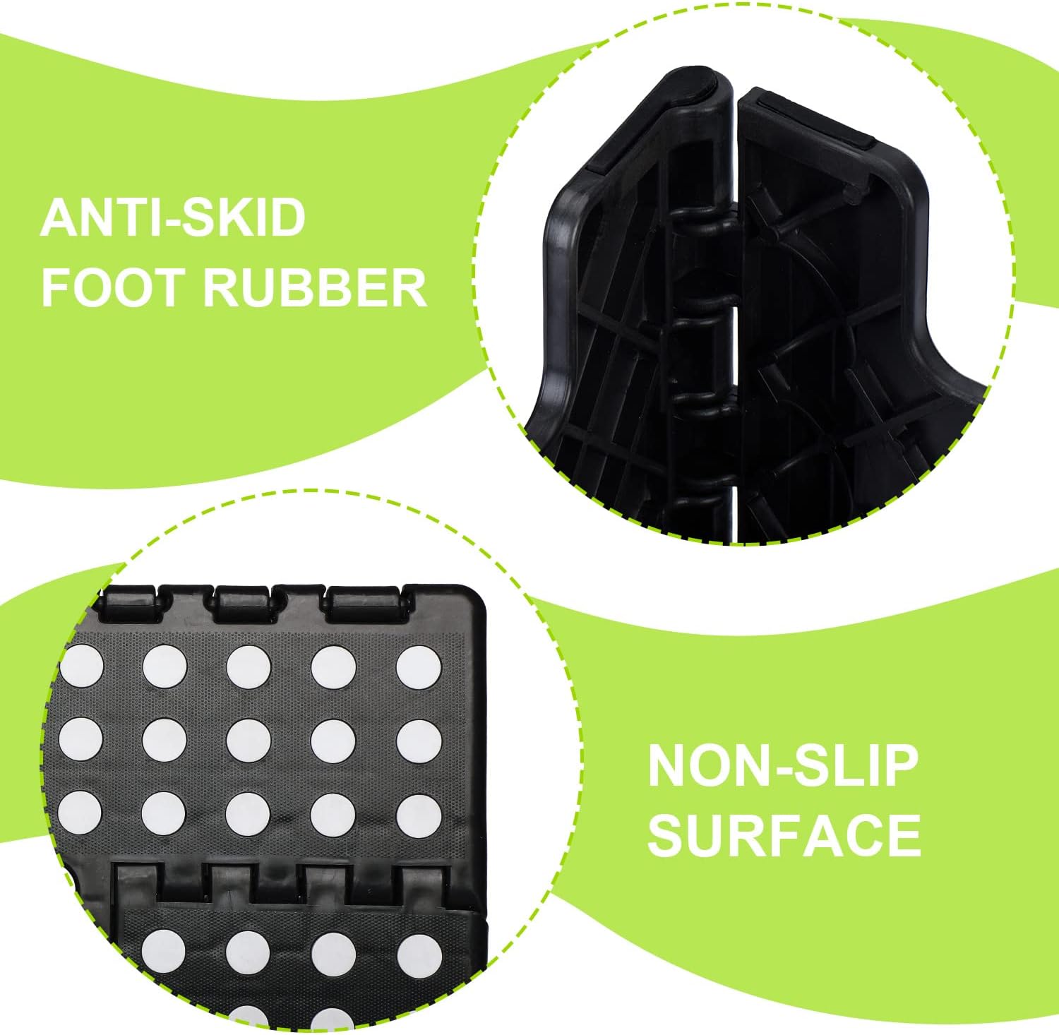 - Non Slip : Special rubber dots on the surface and anti-slip black rubber strap on each foot to prevent slippage.This safety features making the step stool great for kitchen, bathroom, dining room, office, garden, camping, fishing and more