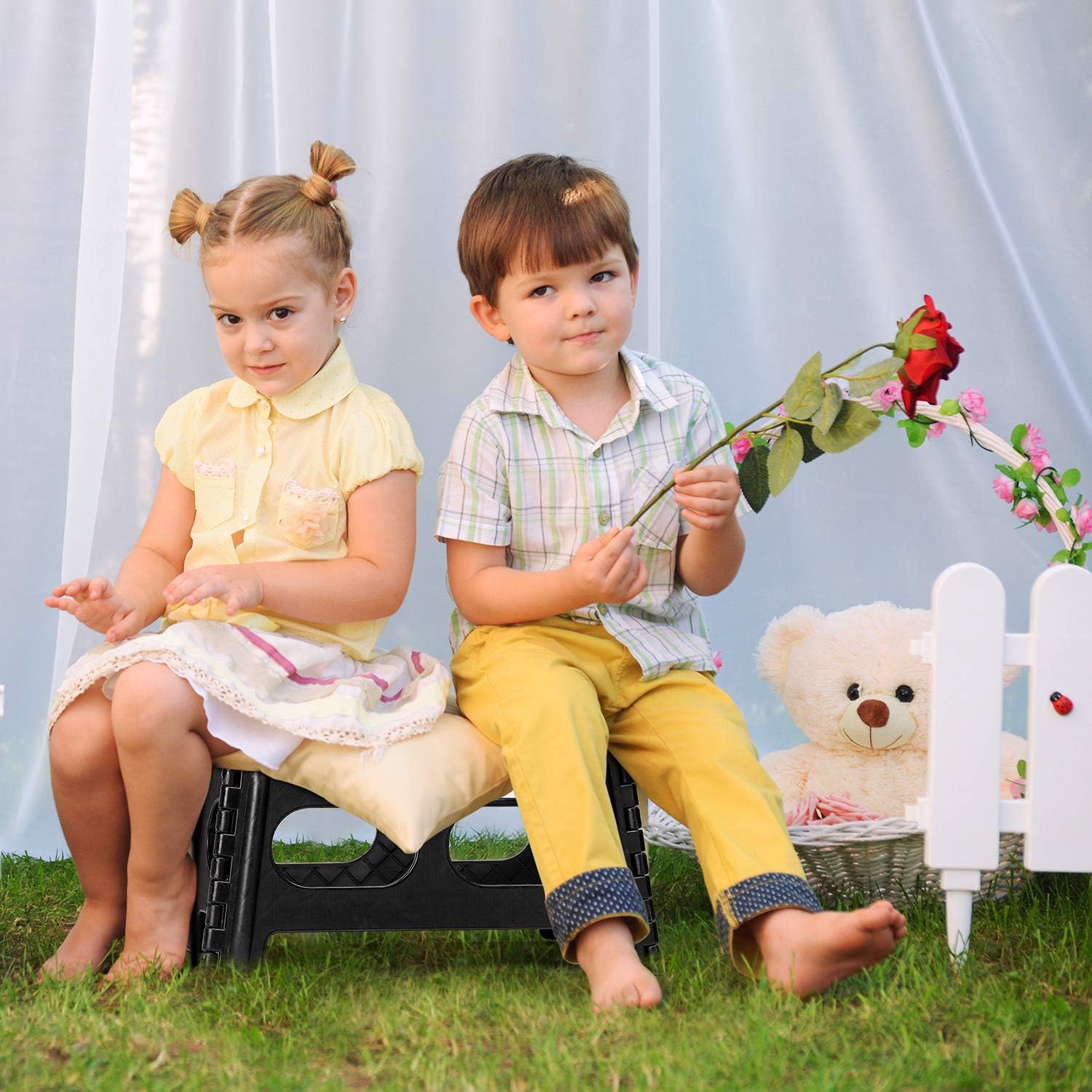 Delxo Folding Step Stool for Kids and Adults,15-Inch Extra Wide 9 Inch Height Heavy Duty Stepping Stool More Safe and Comfortable Non Slip Foldable Step Stool Black