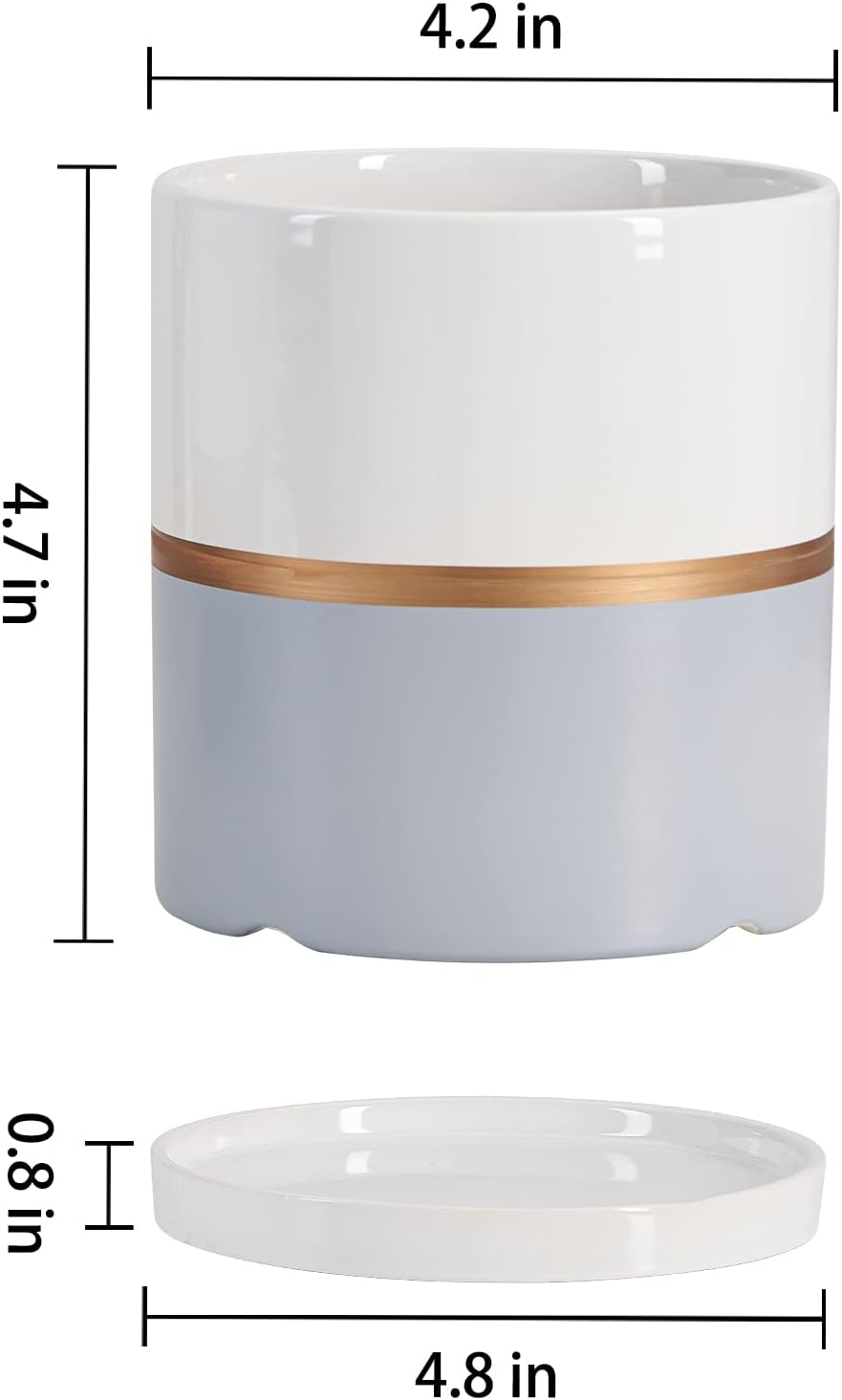 - 【Drain Hole & Saucer Tray】 Comes with a drain hole at the bottom, which can prevents the plant pot from overwatering, promoting plants health, and help them thrive. Saucer base for catching excess water without drips, works well for keep table clean