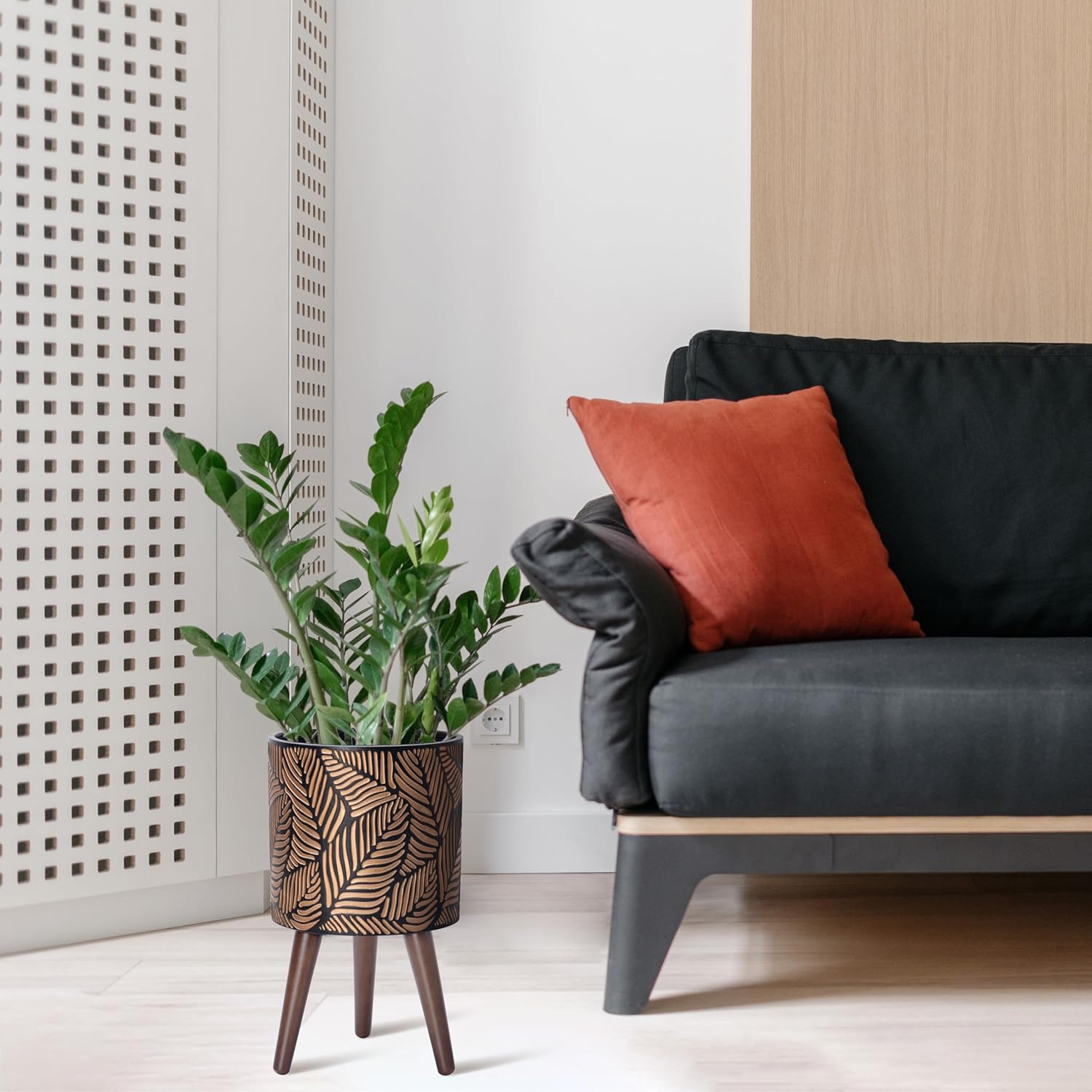 D'vine Dev 10 Inch Planter Pot with Stand, Mid-Century Tall Plant Pot with Legs for Indoor Plants, Medium, Bronze/Grey, 88-L-B-6