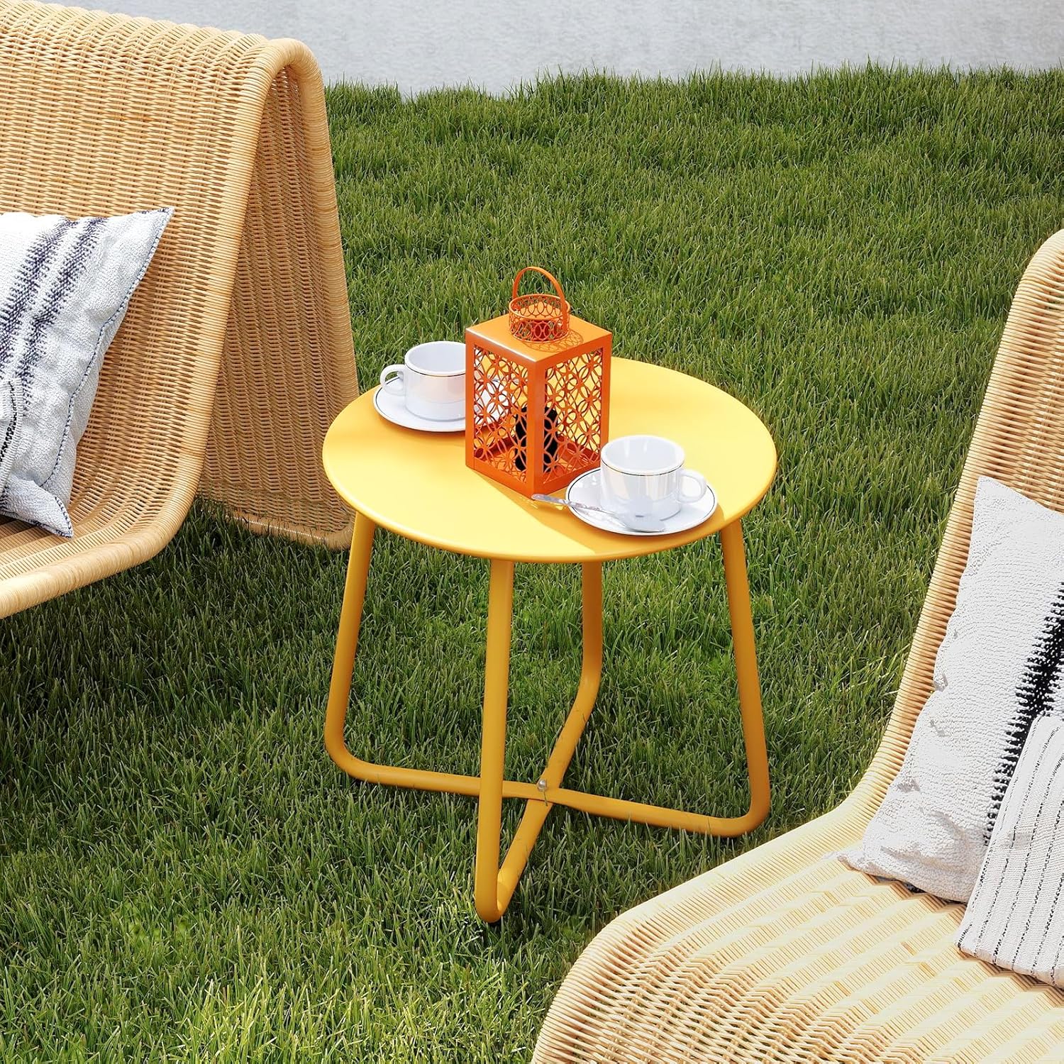 HollyHOME Round Metal Side Table, Rust-Resistant Patio Small Plant Stand, Outdoor 17.32'' Portable End Table for Balconies, Gardens, Living Rooms and Bedrooms, Yellow