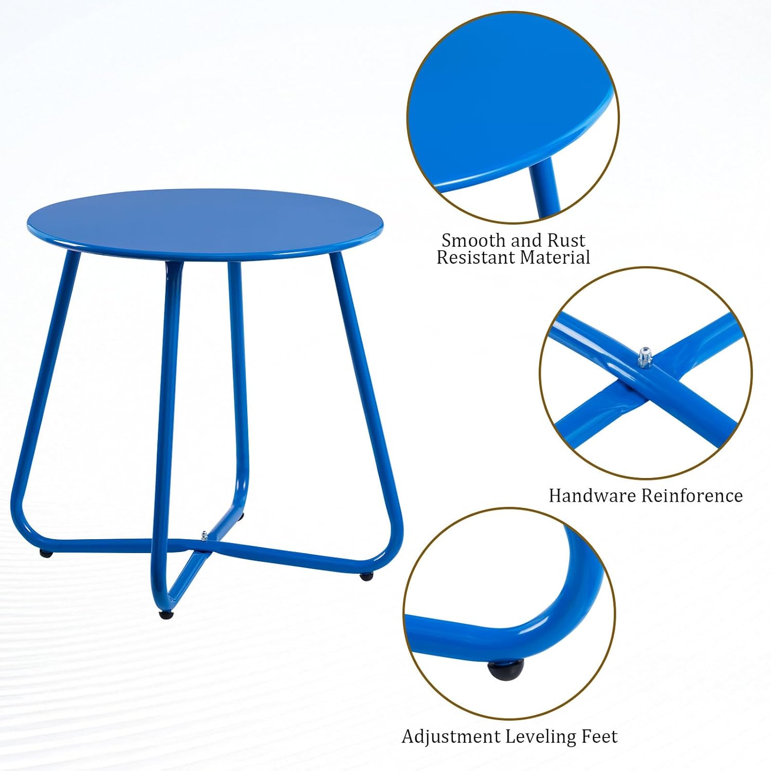 HollyHOME Round Metal Side Table, Rust-Resistant Patio Small Plant Stand, Outdoor 17.32'' Portable End Table for Balconies, Gardens, Living Rooms and Bedrooms, SkyBlue