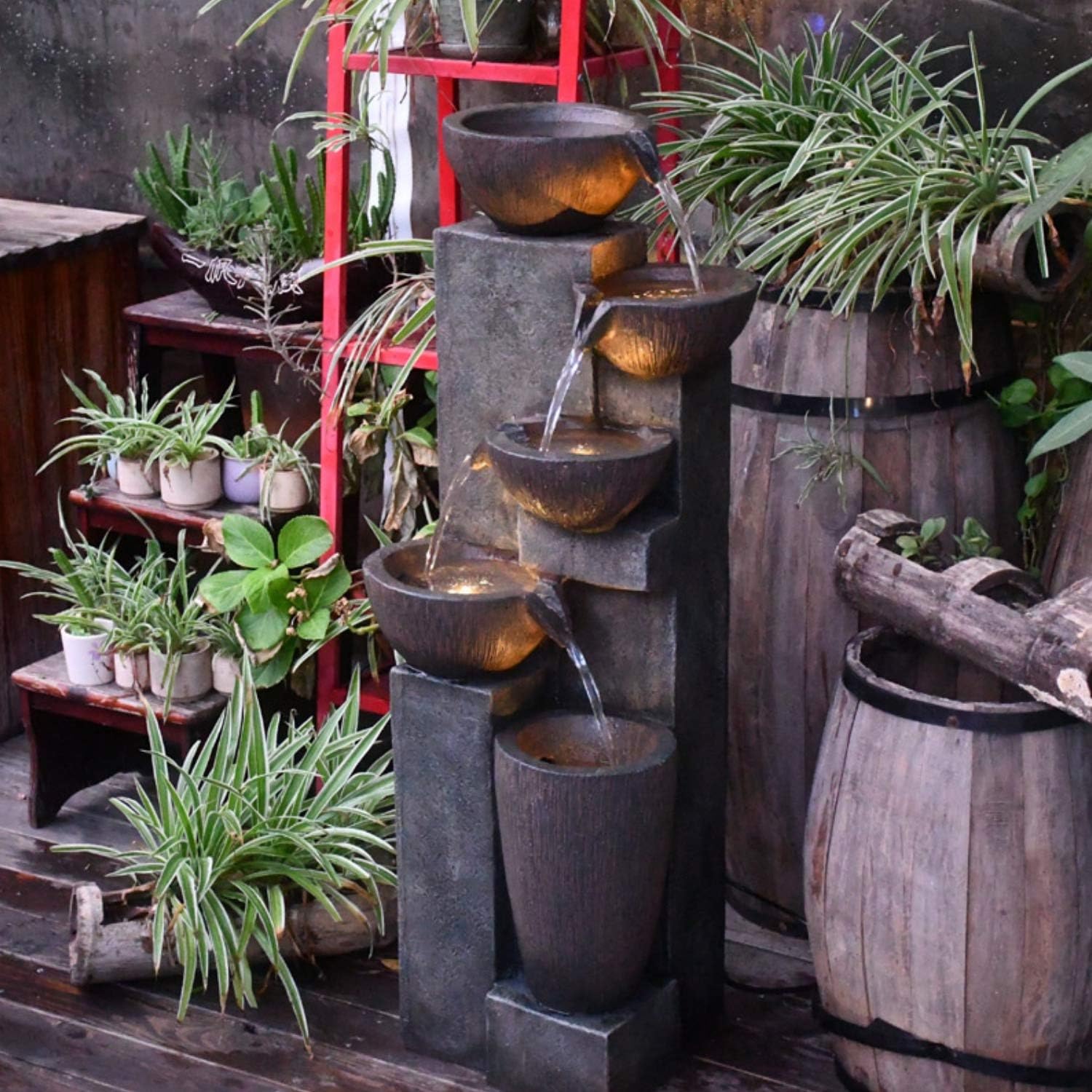 SunJet 5-Tier Outdoor Water Fountain Resin Fountain Decor with LED Lighting Natural Polyresin Looking Stone Decor for Garden Patio Fold Court Yard Deck 12.99" L x 13.78" W x 39.76" H