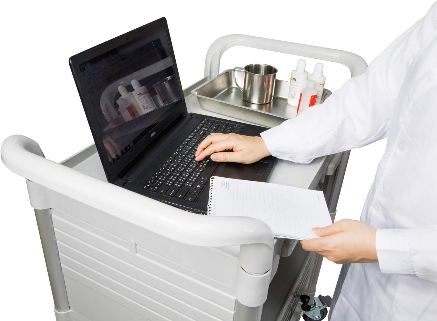 - ā HEAVY DUTY COMMERCIAL GRADE: This reliable JaboEquip Utility Cart with drawers and lockable door is made of commercial reinforced top grade materials and ABS in shelves, Aluminum legs and medical grade TPR castors. It can hold up to 606 lbs per cart.