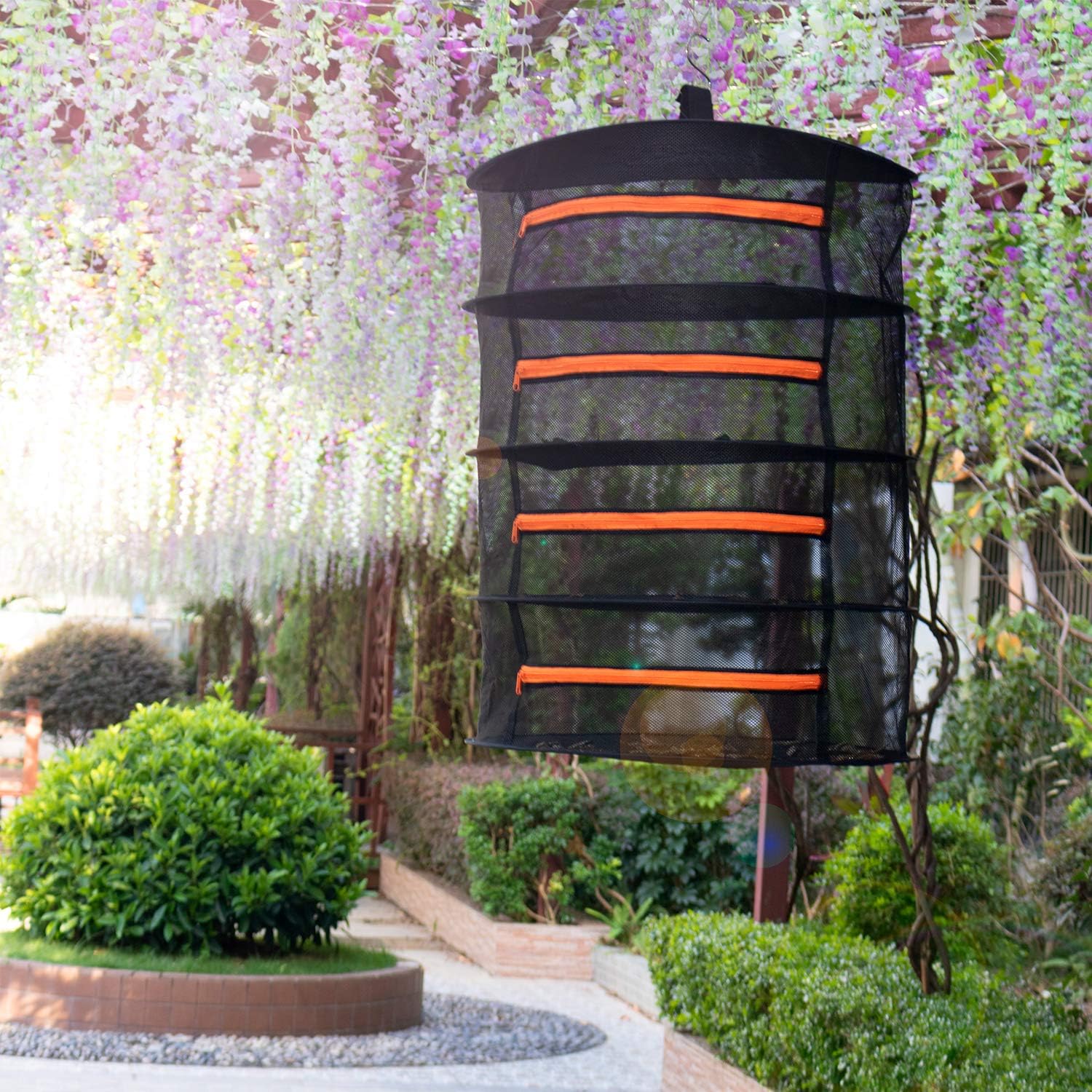 Desy & Feeci Herb Drying Rack-2ft Diameter 4 Layer Folding Mesh Hanging Basket Dryer Net with Zippers for Seeds Flowers Buds Plants Garden Outdoor Bumper Harvest(D24xH31 inch)