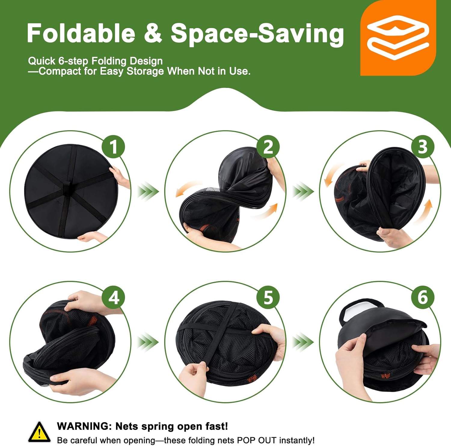 - Send with S hang buckle,a pair of garden shear and a storage bag.(Note: Be careful when you open the package, those nets will POP OUT)