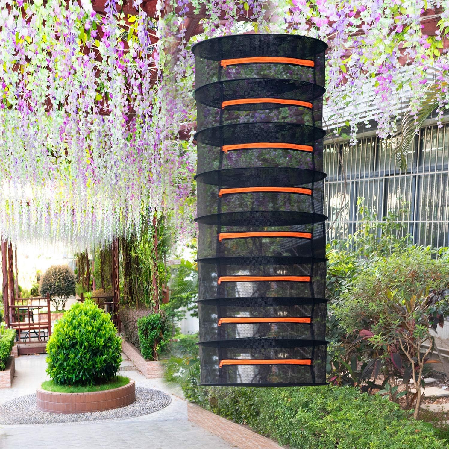 Desy & Feeci Herb Drying Rack-2ft Diameter 8 Layer Folding Mesh Hanging Basket Dryer Net with Zippers for Seeds Flowers Buds Plants Garden Outdoor Bumper Harvest(D24xH31 inch)