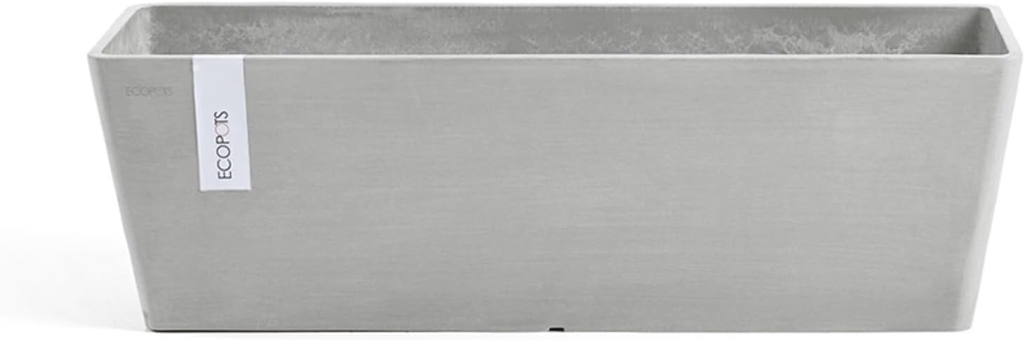 Ecopots Bruges Durable Modern Rectangular Indoor/Outdoor Recycled-Based Composite Flower Pot Planter, White Grey, 17.75"
