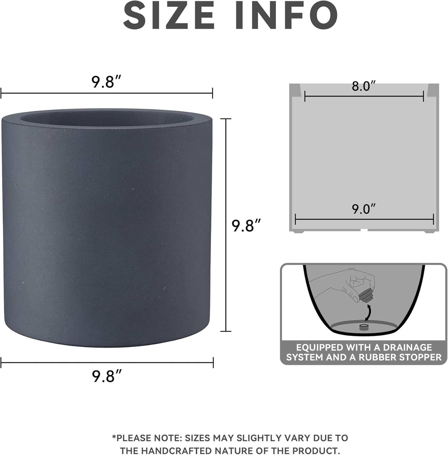 Kante 9.8" Dia Round Concrete Planter, Modern Style Large Cylindrical Plant Pot with Drainage Hole and Rubber Plug for Indoor Outdoor Patio, Charcoal