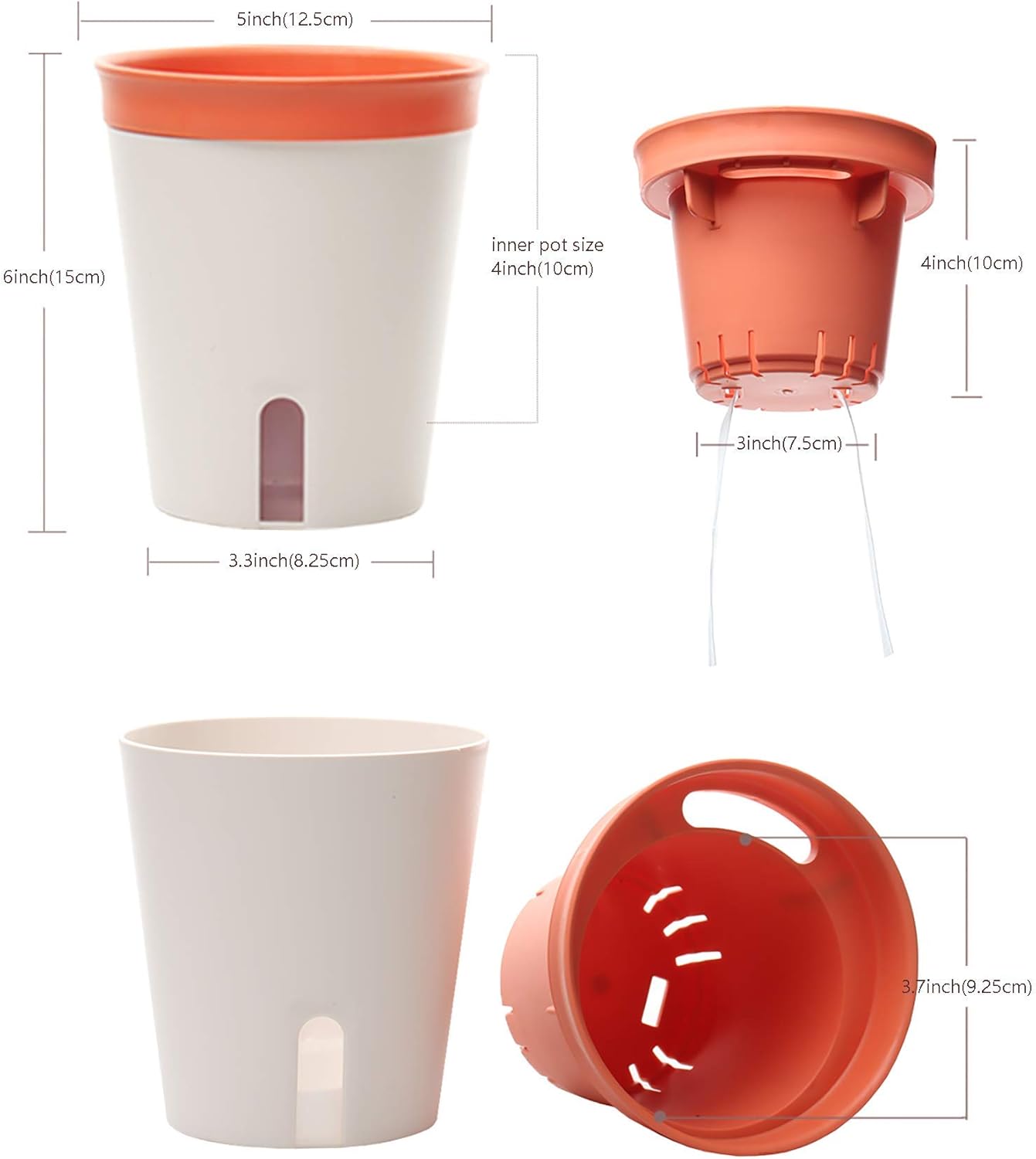 - 5, Include 6 planters: 3 round flower pots of 5 inch diameter, height is 6, 3 11 inch long rectangular flower pots, size: 11" x 4.7" x 5.5" (Length x Width x Height) Note: Plants are not included, only for demonstration purposes.