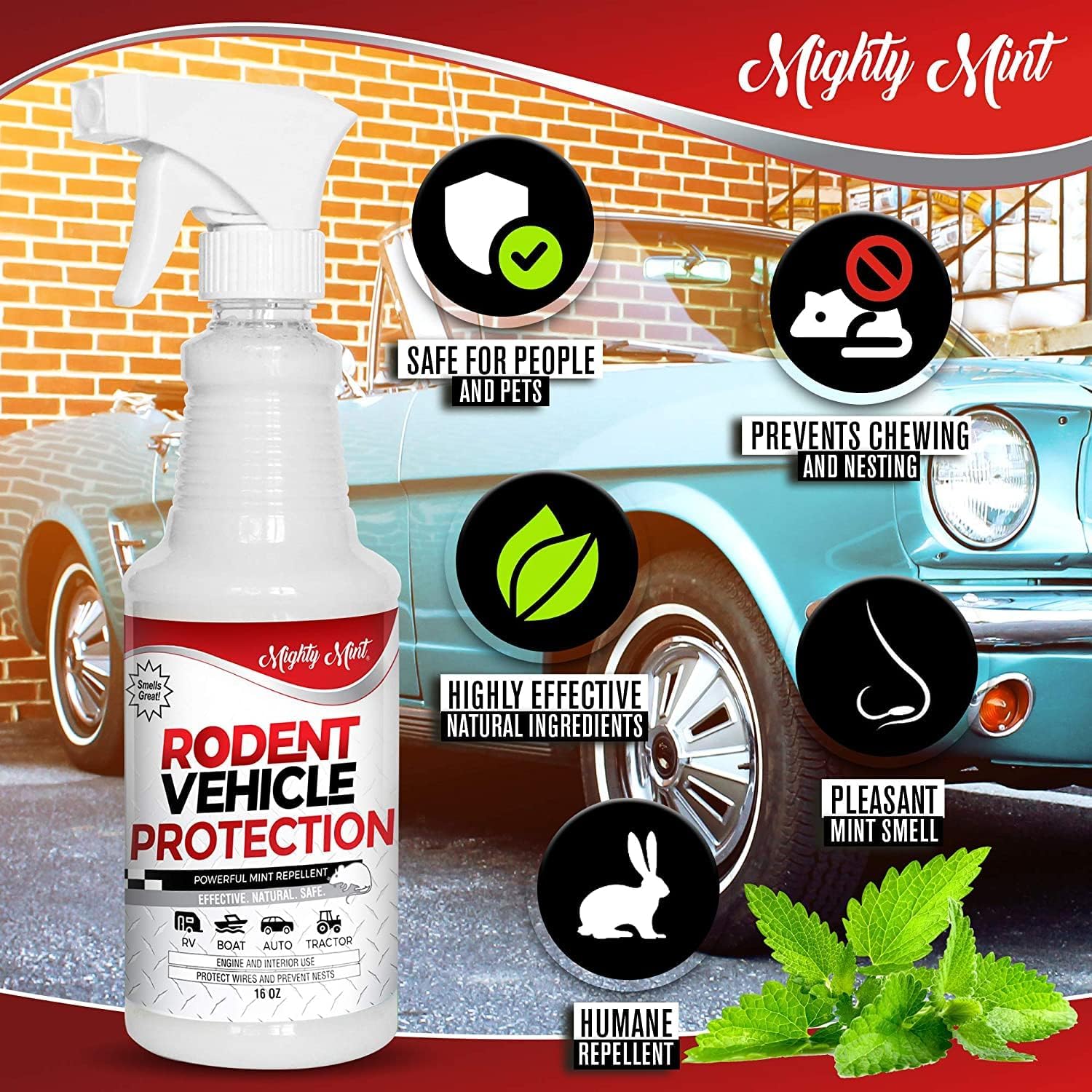 - POWERFUL PLANT-BASED RODENT DETERRENT – Made with extra-concentrated peppermint oil, this spray helps repel mice, rats, and other rodents. Helps prevent nesting and chewing damage in vehicle compartments.