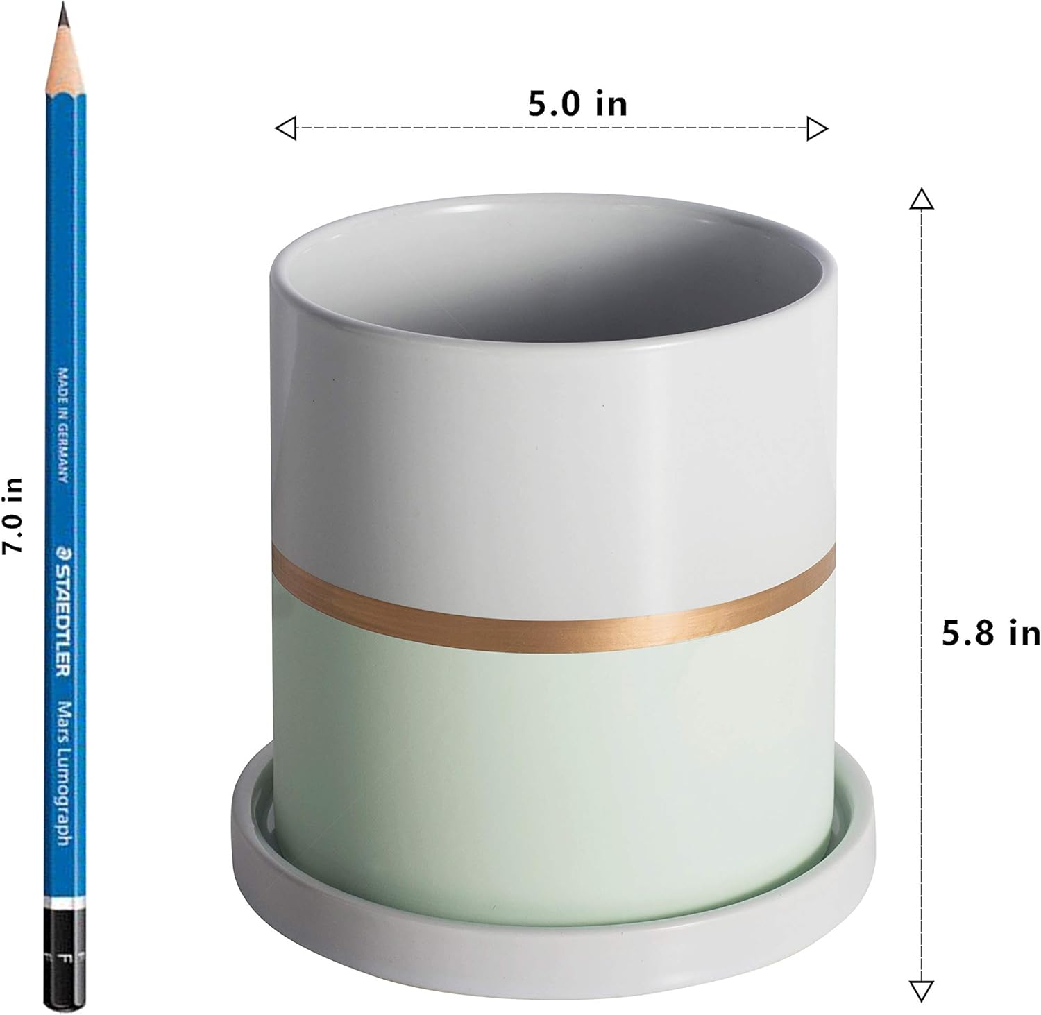 Ekirlin 5 inch Plant Pot - Ceramic Flower Planters Indoor - Modern Succulents Containers with Drain Hole Saucer, Decorate Home, Office & Outdoor (Green)