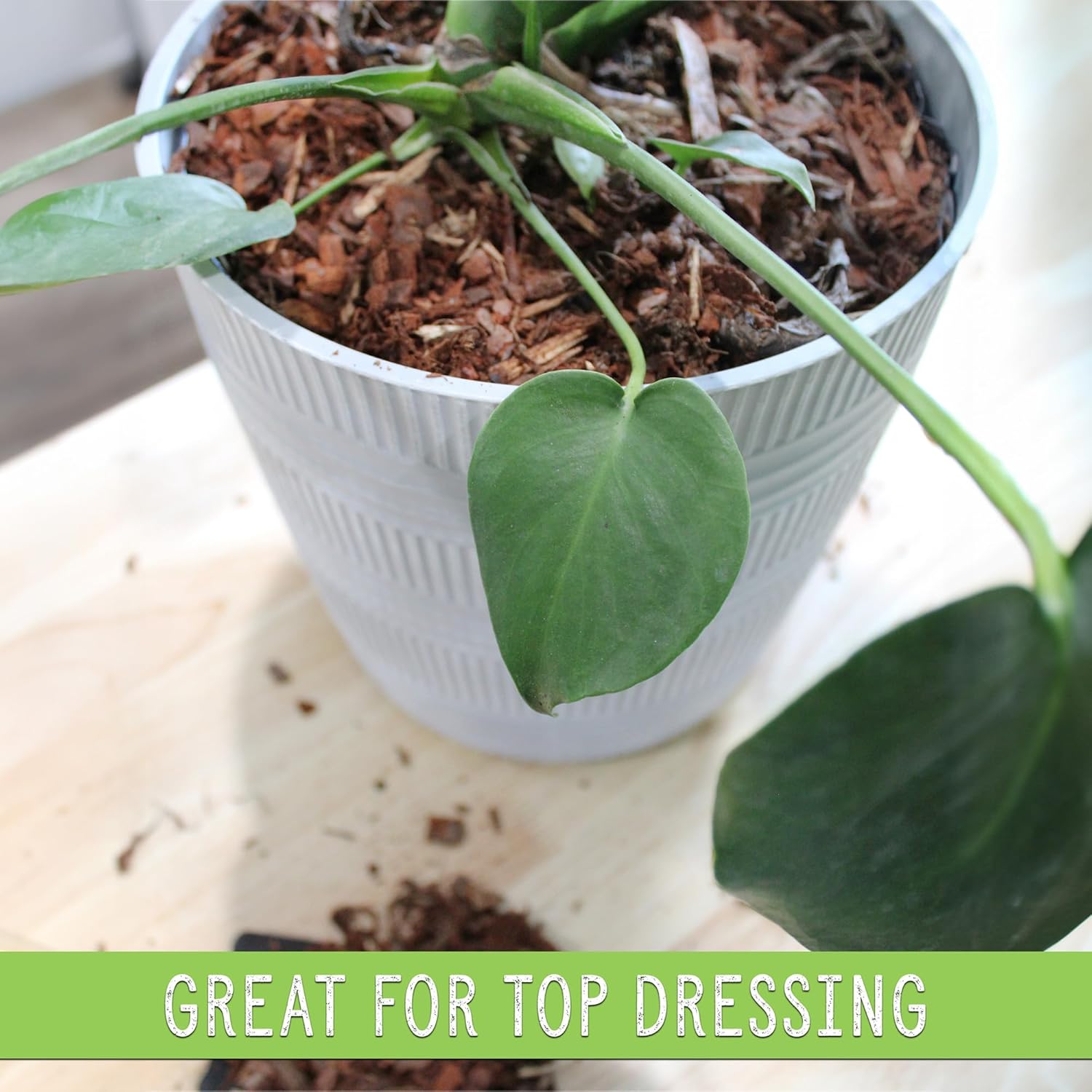 - BEAUTIFUL SOIL COVERING - Add visual consistency to your indoor potted plant garden with house plant mulch - Mulch chips are longer lasting than coconut coir or shavings