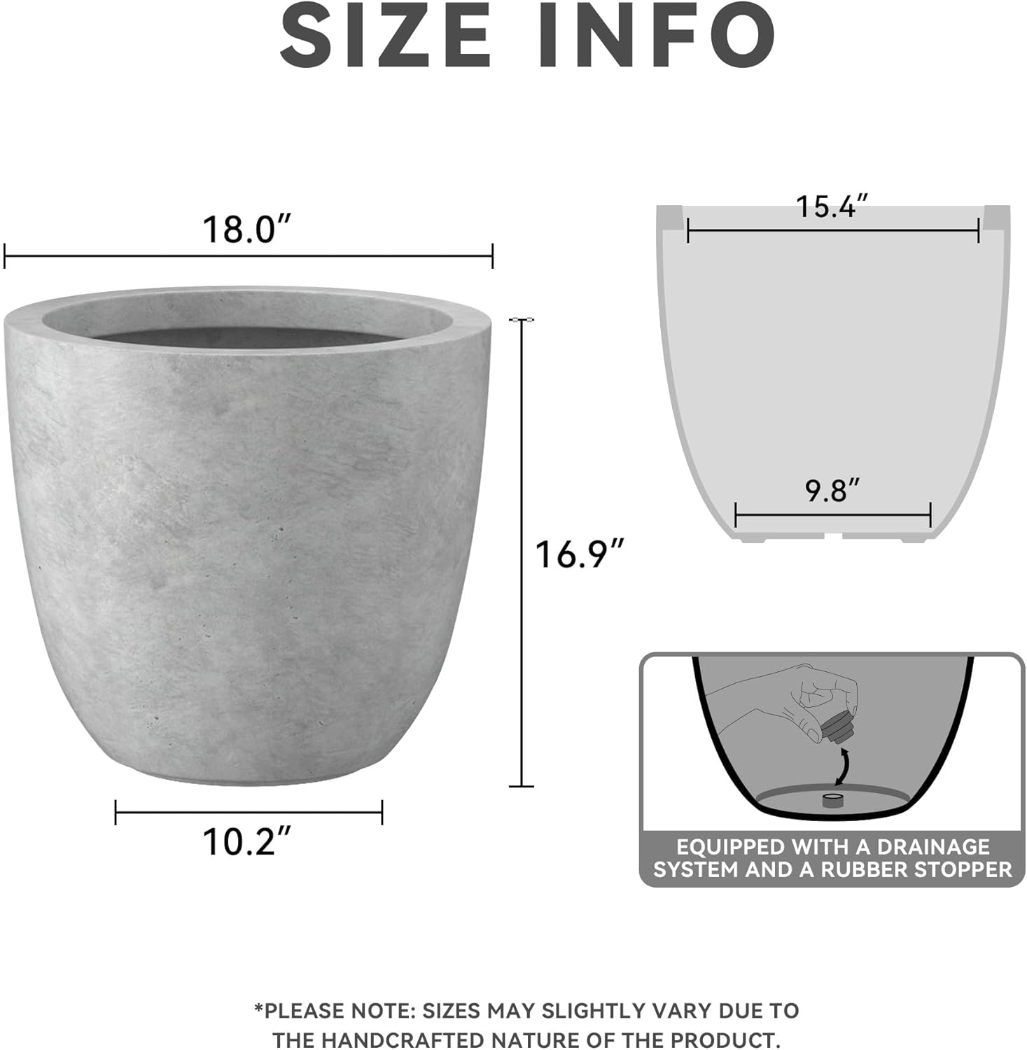 Kante 18 Inch Dia Round Concrete Planter, Indoor Outdoor Large Plant Pot with Drainage Hole and Rubber Plug for Home Patio Garden, Natural Concrete