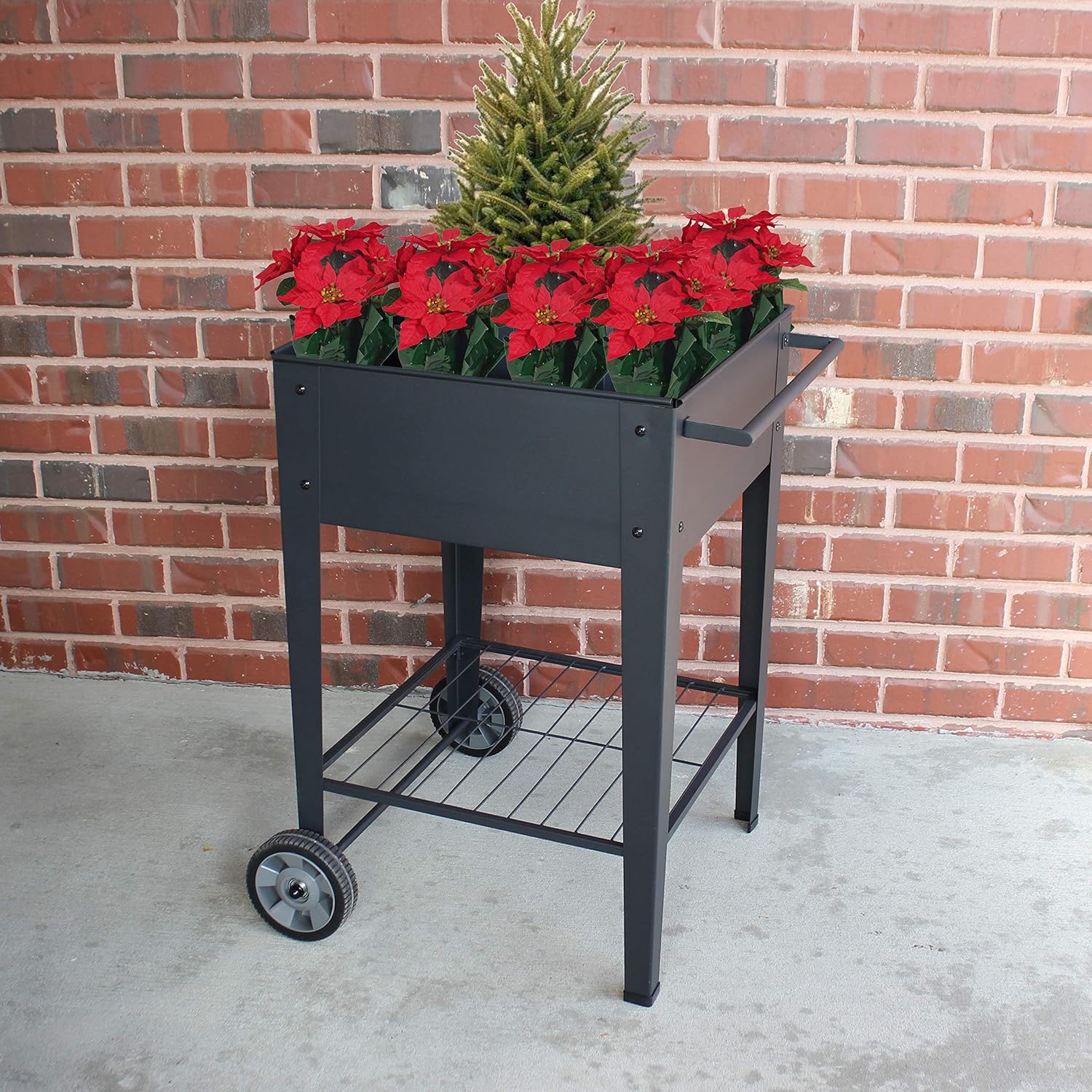 - Strong and Durable: The GarraÌ Garden cart is made of heavy duty powder coated steel frame with a fashionable finish. Planter has optional center section to display or plant deeper. Shelf is good for storage of gardening accessories.