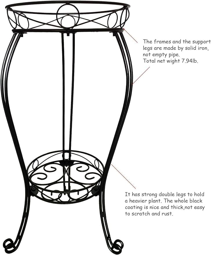 - HEAVY DUTY】:This plant holder is made of high quality,thick,sturdy SOLID iron steel.NOT HOLLOW IRON PIPE.Total net weight is 7.94 lbs. Can holds a plant in a heavy ceramic pot.Easily hold 100 or more lbs.