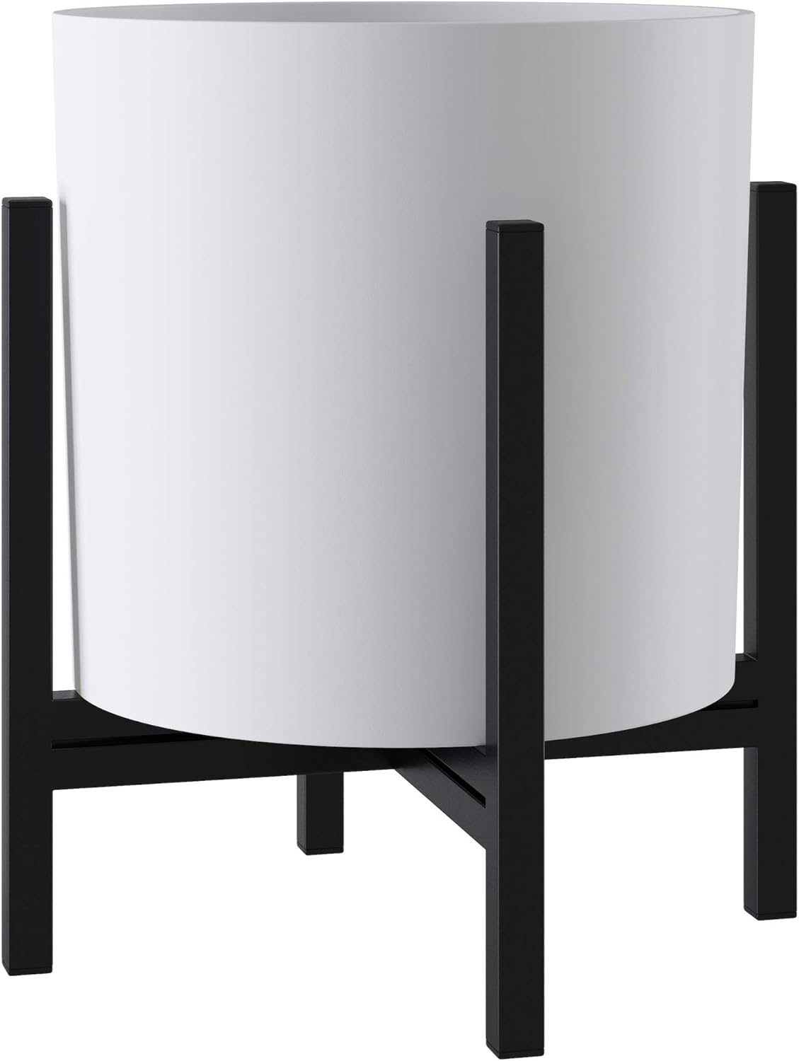 FaithLand Plant Pot 8 inch - Perfectly Fits Mid-Century Modern Plant Stand - Drainage Plug and Drainage Mesh Screen - White Planter Pot.