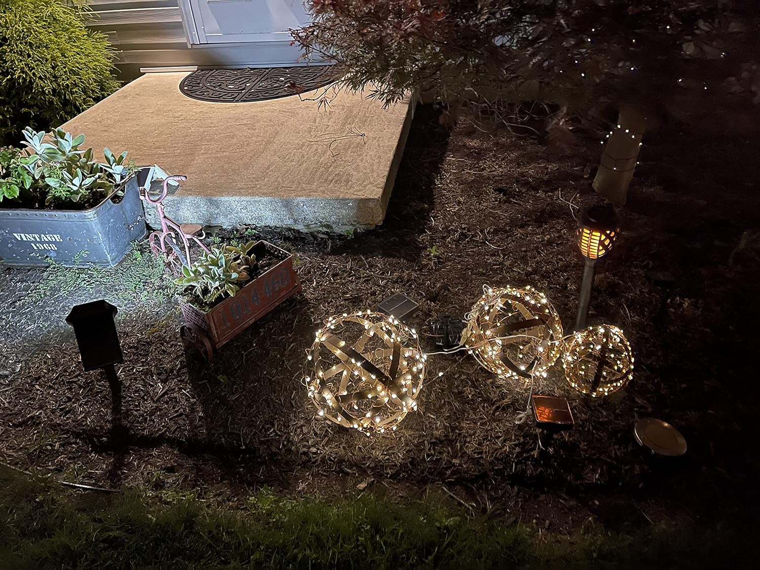 - Read before buying: the decorative sphere POSSIBLE smaller than you expect, Small sphere 7.15" Dia, Middle 9.9"dia, big one is 11.9" dia inches, Metal Sphere in Rusty Finishing effect (not real natural rusty).