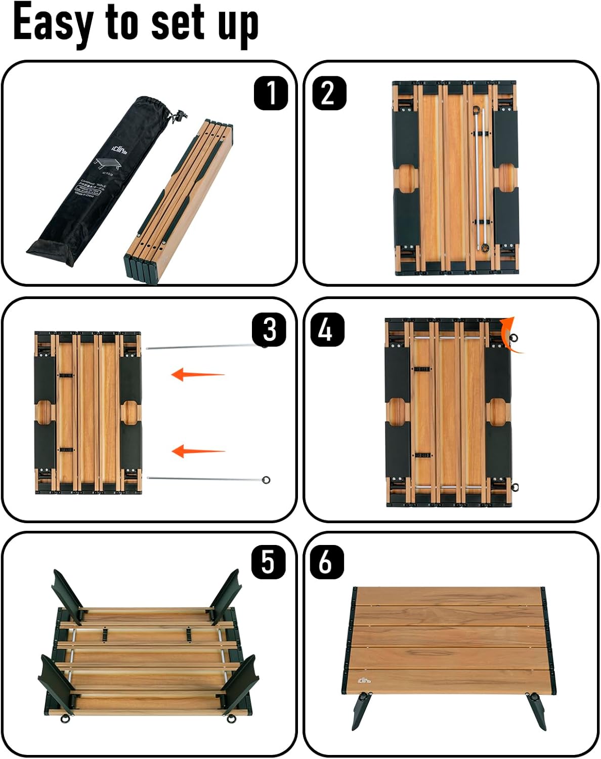 - Compact, Mini, packed size 17.32 × 3.15 × 2.76 inches; carry bag included, easy to carry everywhere; Very easy to set up, just open the base frame and fix them with the bars, enjoy your leisure time in seconds; Perfect height and size for drinks and snacks when relaxing on your camping chairs, have a picnic in the garden, as a beach table, go fishing, have breakfast on the bed.