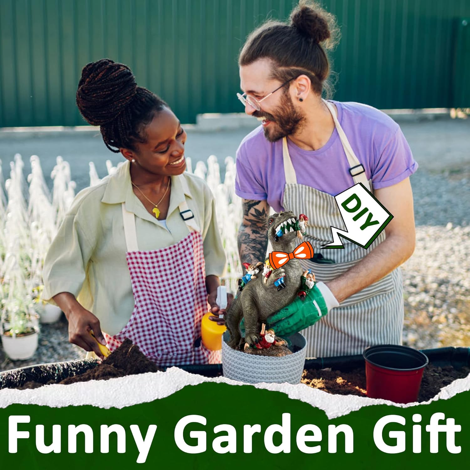- Adorable Garden Decor: This Dinosaur Gnomes Statue made up of high-quality resin and has excellent weatherproof performance, is an adorable decoration for garden, lawn, patio and yard which can make your home more lively