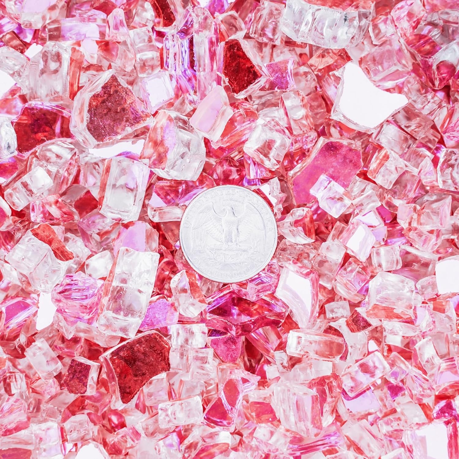 - 【Reflective Tempered Glass Shining In The Fire】- The broken Pink glass backed by a highly reflective mirrored backing that gives off a beautiful metallic, It shines in the daytime and appears multicolored at night with fire.