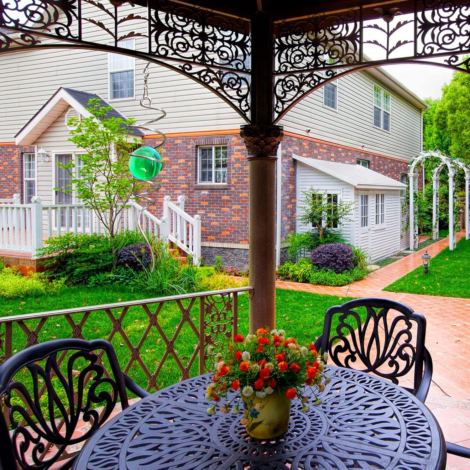 FONMY Gazing Ball Spiral Tail Wind Spinner Stabilizer with Swivel Hook 11inch Stainless Steel Tail and 2 inch Green Glass Orb. Indoor Outdoor Garden Decoration Hanging Ornaments 13 inch Height