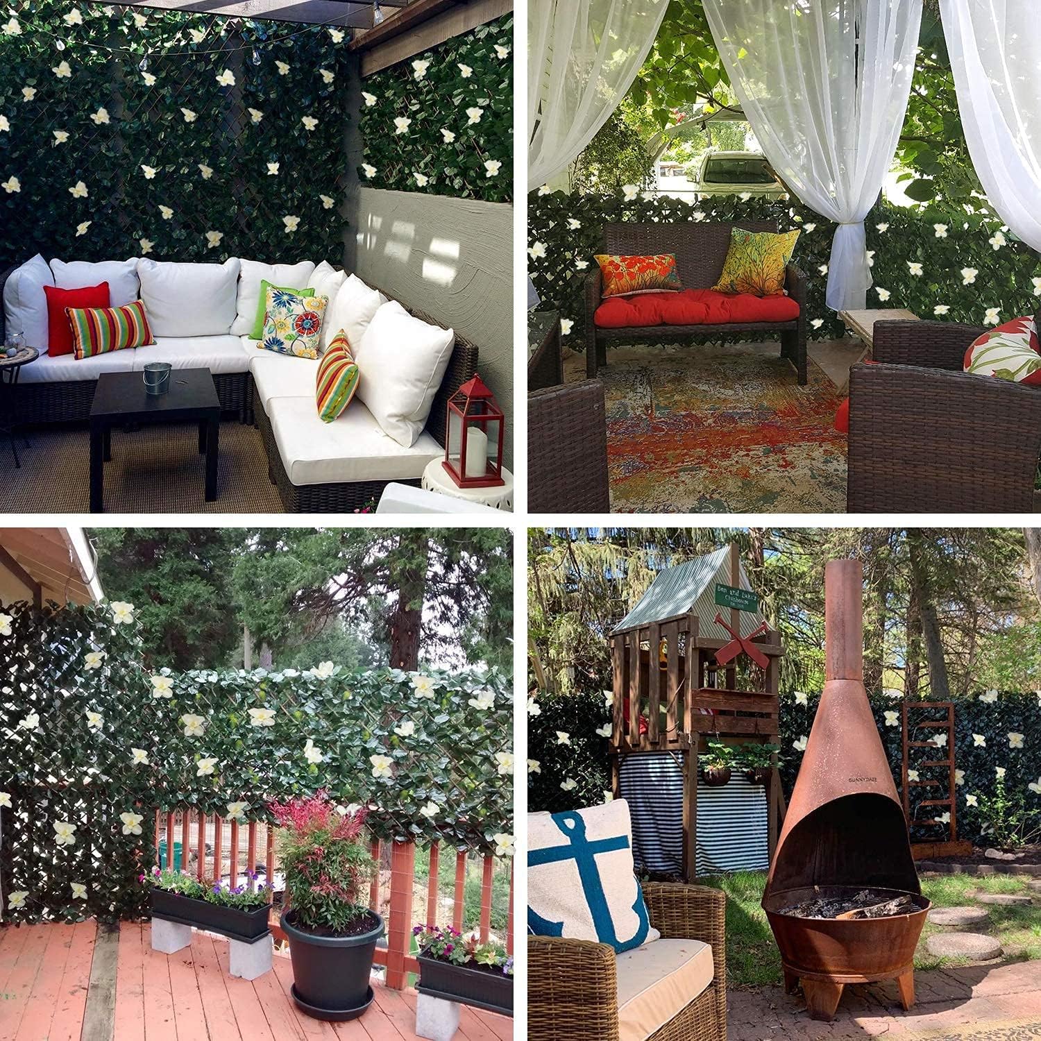 Expandable Faux Ivy Fence,Artificial Privacy Screen Decor for Outdoor Wall, Balcony and Patio, Single Sided Leaves (1,White Flower)