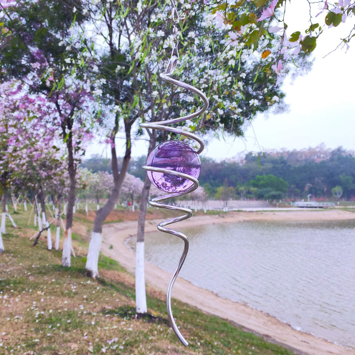 - [EASY TO POSITION]: Includes a 2 inch colored glass orb , a stainless steel spiral tail twister,and a swivel hook accessory, ready to hang and enjoy.