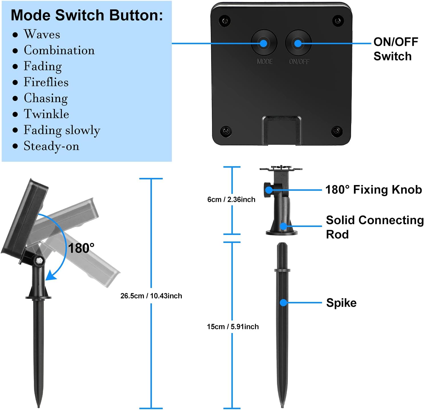 - Extra-long String & 8 Light Modes: Each string is 72 feet long and includes 200 tiny LED lights. There are 8 light modes in total—waves, combination, fading, fireflies, chasing, twinkle, steady-on, and fade slowly-—available for you to create lighting effect as desired.